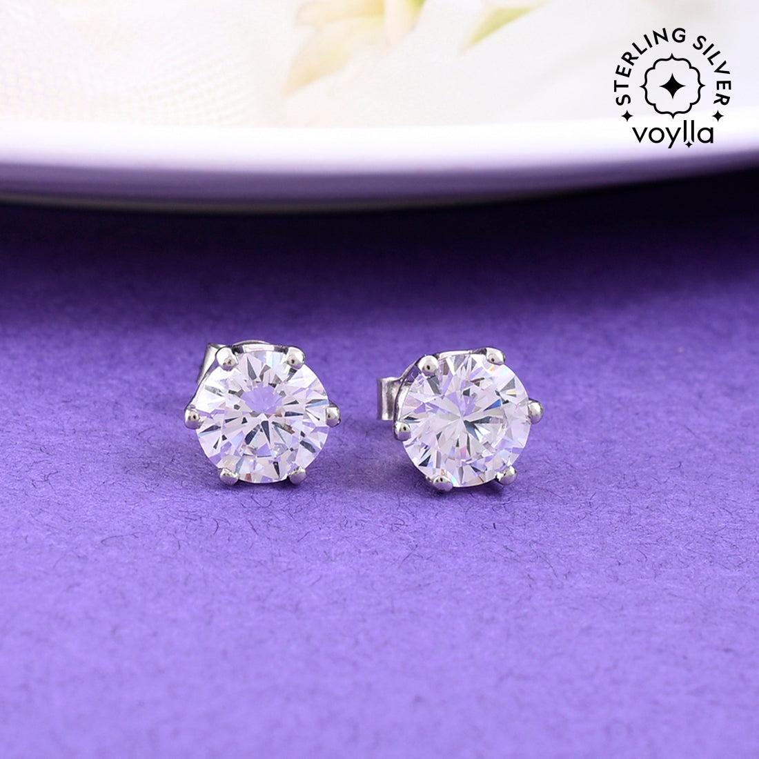 Showcase a regal vibe with these silver-plated earrings. Designed with high-quality material, the piece of fine jewelry is bound to catch all eyes and is perfect to wear at any event. Enhance your look with this pair of ear studs manufactured with care using metal, and this silver-plated diamond earring is sure to impress you.