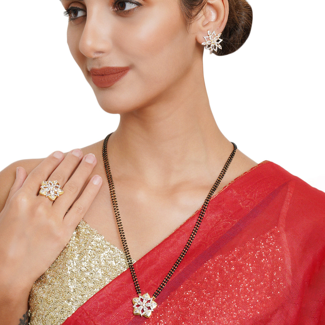 Sparkling Mangalsutra Necklace Set with Starry Floral Motifs