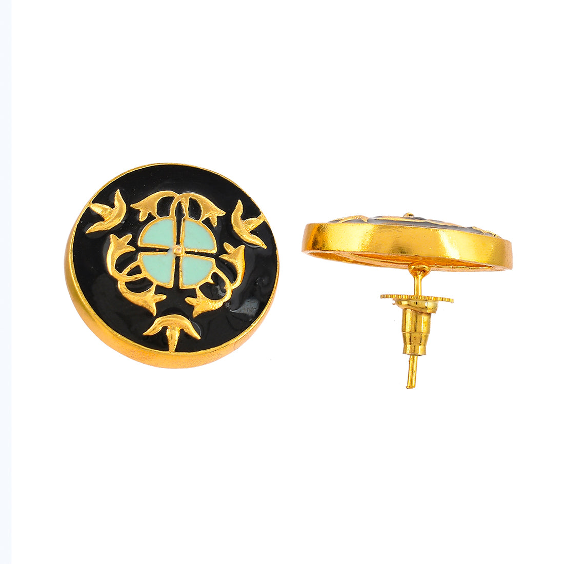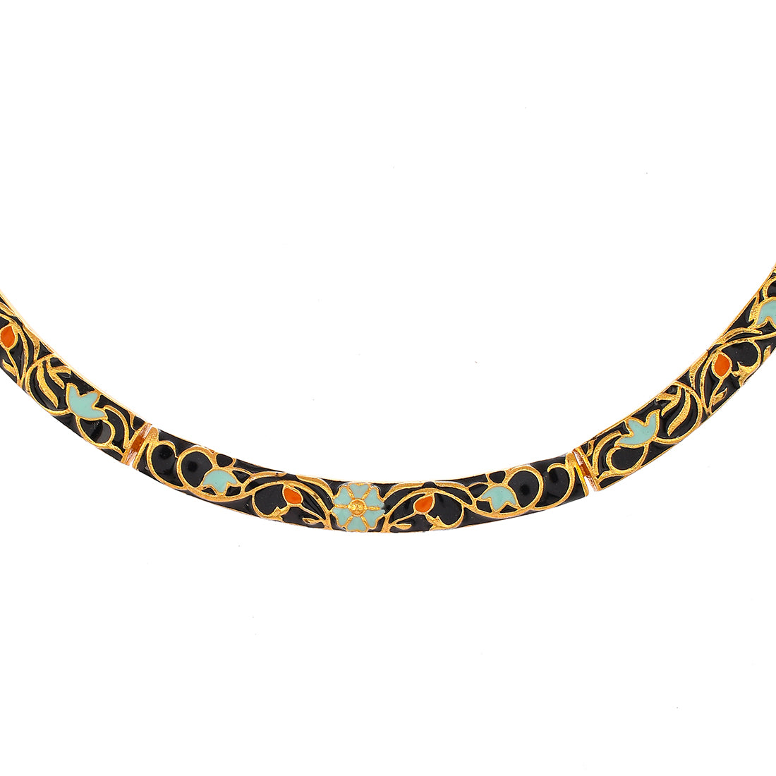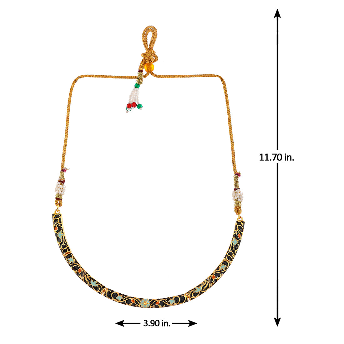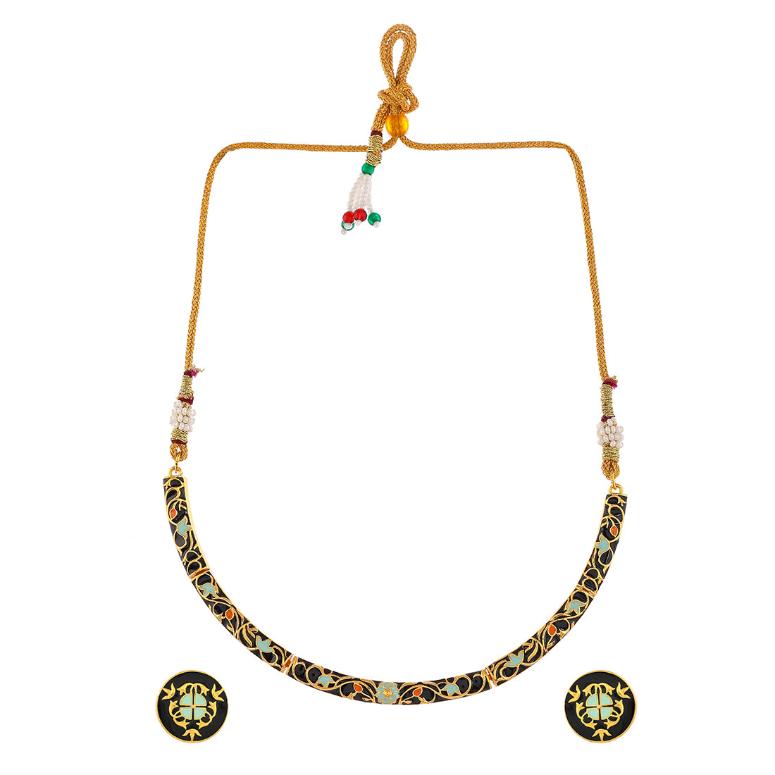 This Black gold-plated necklace set is a precise embellishing art for your neck with distinctive character, desirable shine and a sheer aura of royalty. As the gold metal blends beautifully with our extravagant design, the gaze is divine and forms a breath-taking combination. Crafted with utmost enthusiasm and brilliant craftsmanship, this timeless piece exudes sophistication and luxury.