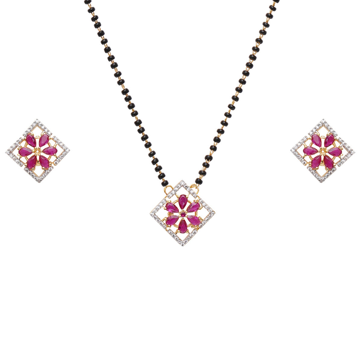 Sparkling Elegance Red Zirconia Gemstones Mangalsutra Set
