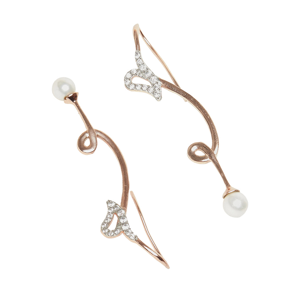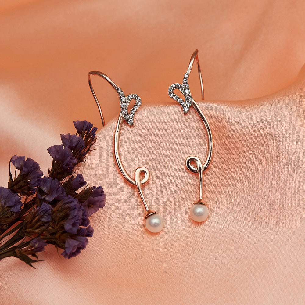 Your earrings should be as unique as your personality. Our inverted S-shaped rose gold earrings with a pearl as a party statement piece is blowing the mind of everyone through their luster. You can easily pair this with a dainty...