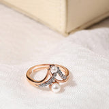 Rose gold and pearl instantly give you a luxuriousness. In our exclusive luxury collection, we have a rose gold ring studded with luster diamonds and, a pearl stone in it. This ring can be styled, with both ethnic and western wear.