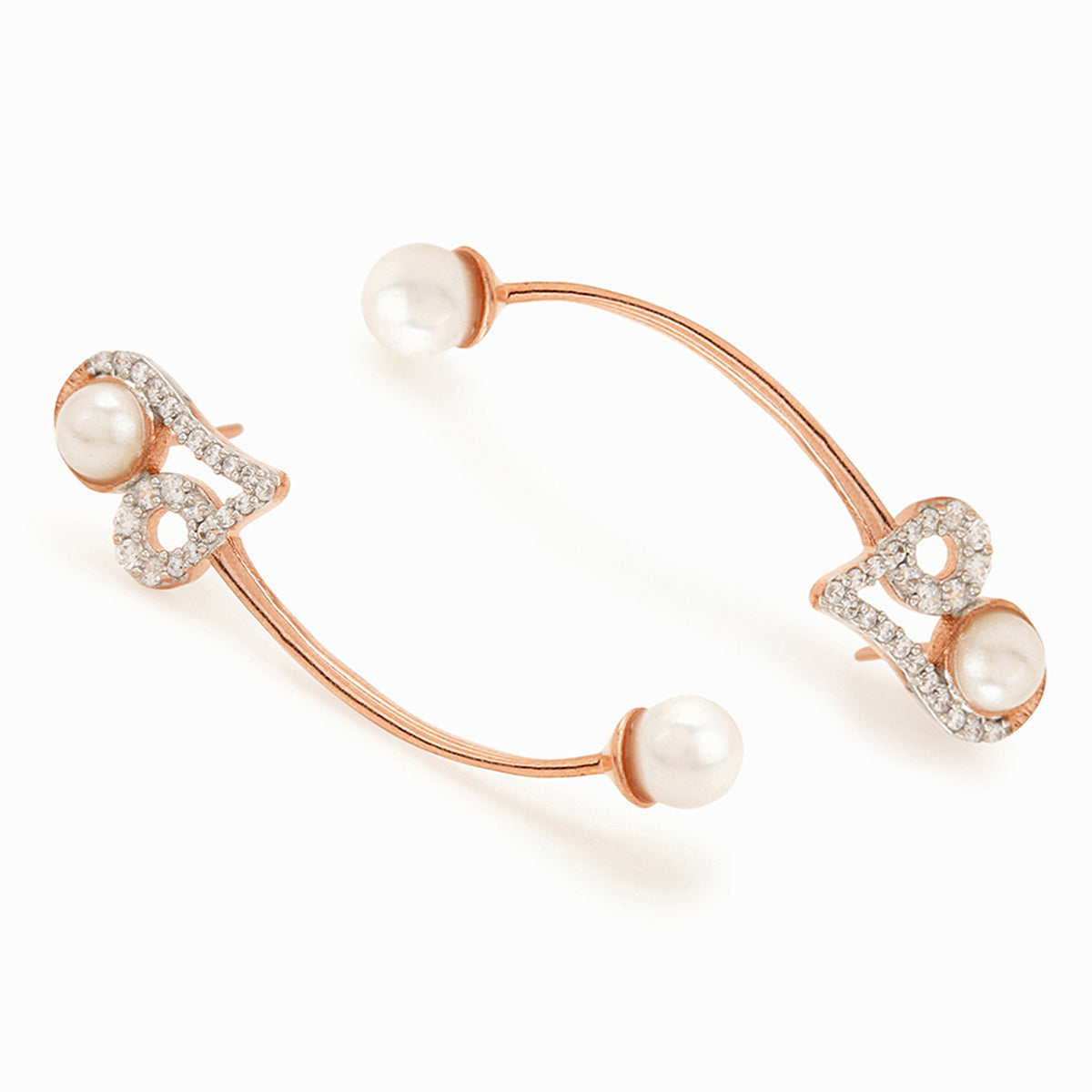 Your earrings should be as unique as your personality. Our inverted S-shaped rose gold earrings with a pearl as a party statement piece is blowing the mind of everyone through their luster. You can easily pair this with a dainty...