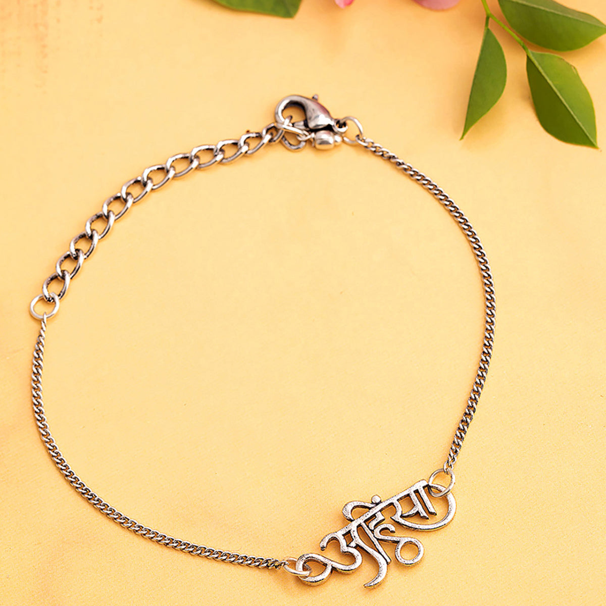 A classic chain bracelet, inspired by the Yogic principles of self exploration and oneness with the universe. Featuring an “Ahinsa” inscription, the brass bracelet has been given an oxidised plating. A lightweight and comfortable piece, the bracelet is good for everyday, casual wear.