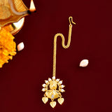 A delicate yet eye-catching ethnic hath phool, inspired by the beauty and essence of devotional Indian festivals. Made from brass and white pearls embellished, the hath phool has been given a lovely yellow gold plating. Pair with Indian looks.