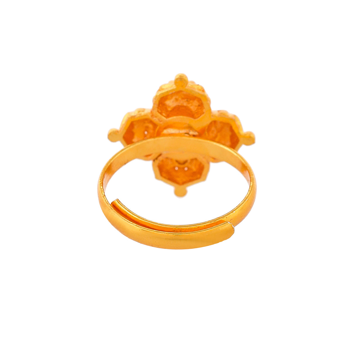Designed as a tribute to the beauty and essence of Indian festivals, this adjustable ring has been fashioned from brass into a traditional design. Yellow gold plated and white pearls embellished. Comfortable and versatile.Caring for your fashion jewelry: We, at...