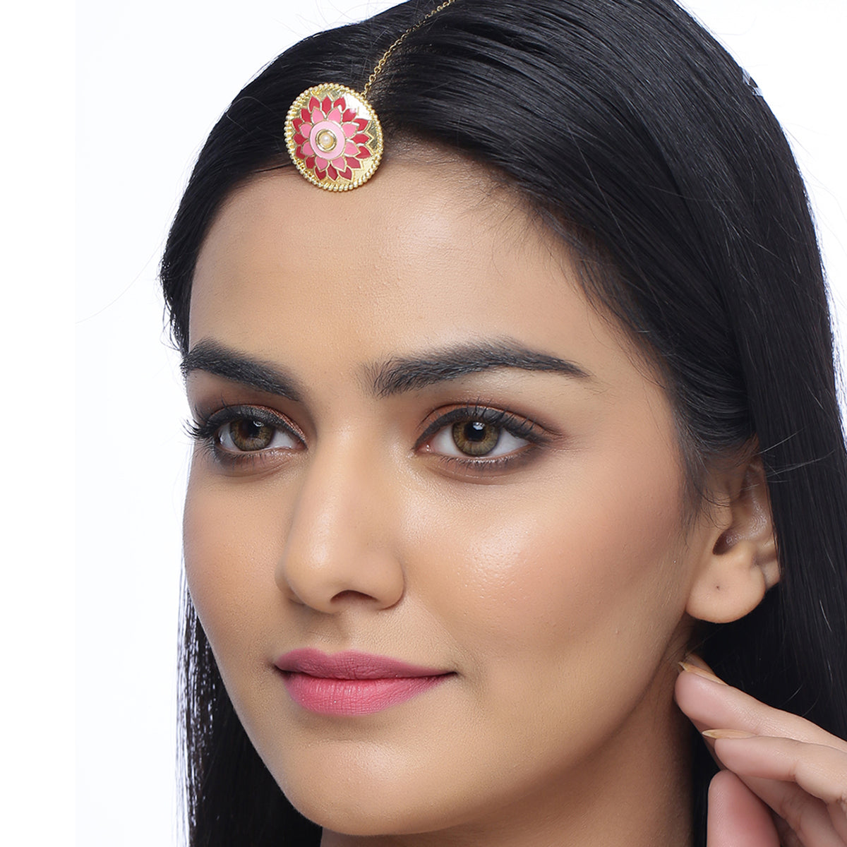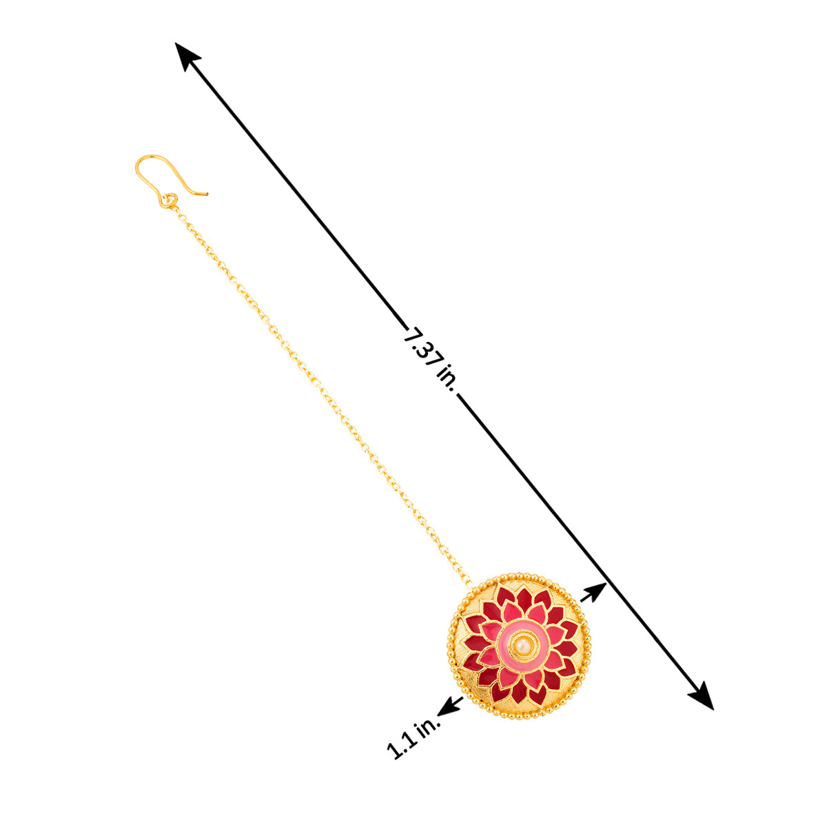 Borla Collection Enameled Floral Motif Embossed Maang Tika
