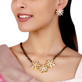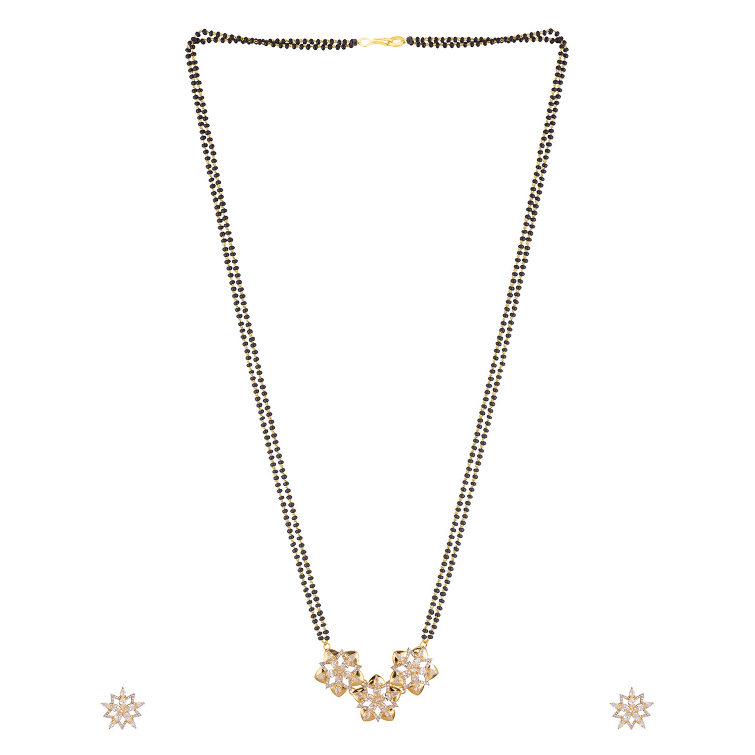 American Diamond Mangalsutra & Bracelet Gold Plating Brass Material 3 Flower give Georgios and adorable Look . Easy to Carry with all Outfit without hassle Sliver and it is Covered with Gold.