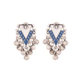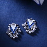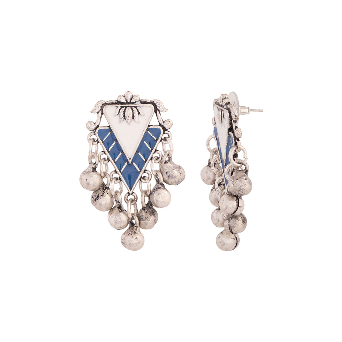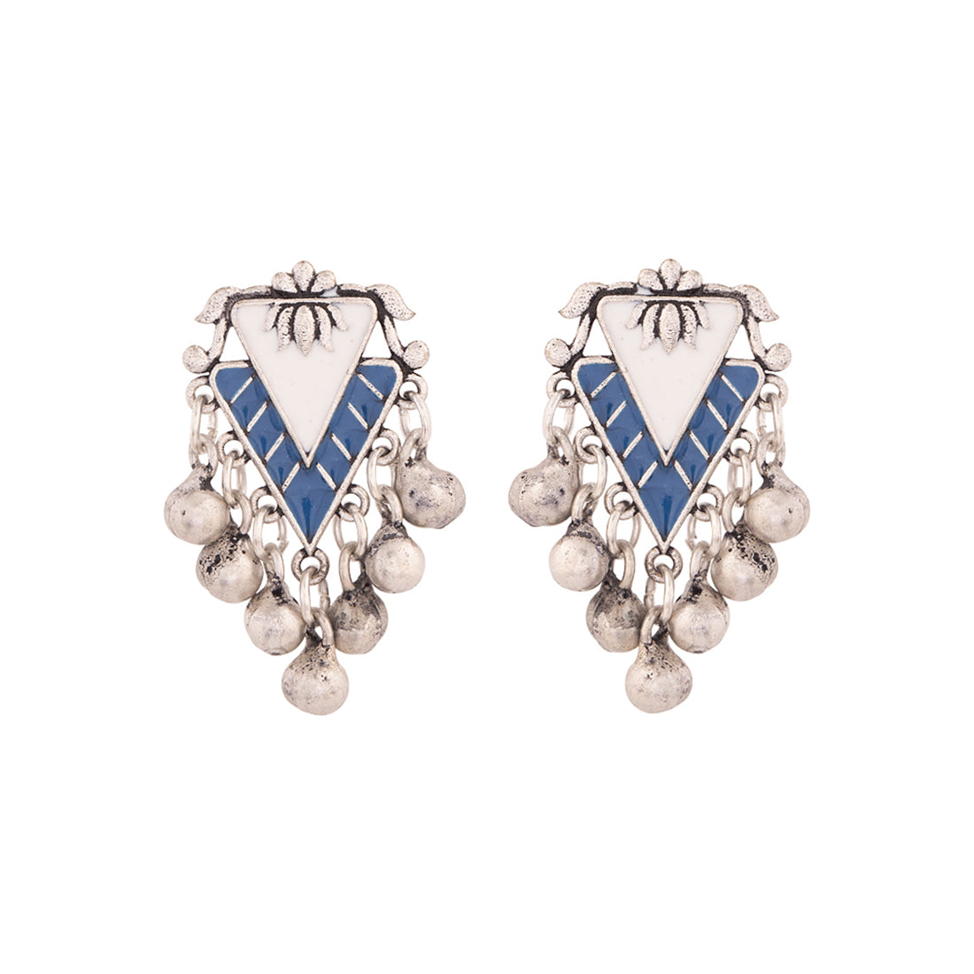 Triangles stud earrings made from brass and oxidised silver plated. Lightly embellished and enameled. Wear with Indian attire.