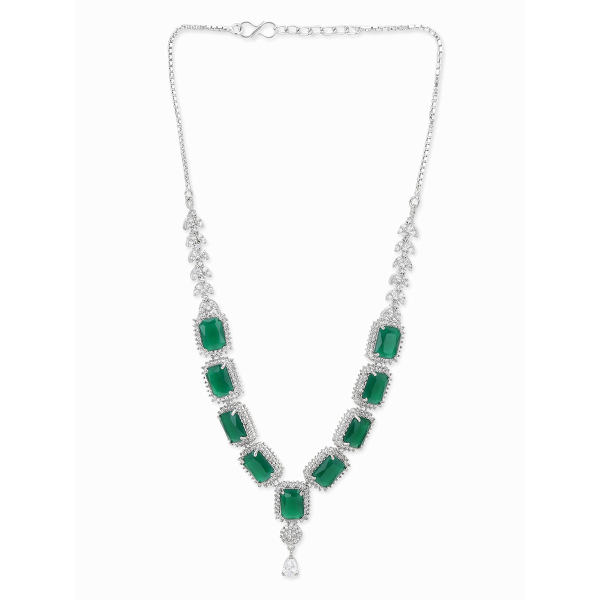 The Beautiful Collection of Jewelry Pieces come with a personal Meaning as well as Special Packaging the Sparkling Elegance Silver Brass Necklace Sets Which is Green In Colour and Square in shape with Gold Colour Chain easy to Wear all the time in Summer Session without pain