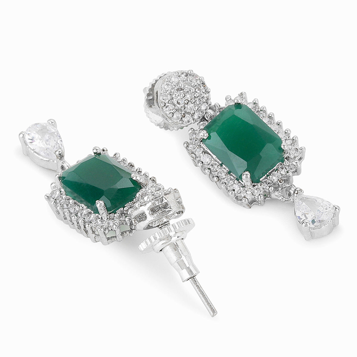 Silver plated brass jewellery set with round cut zircons in a lovely emerald colour. Lightweight, comfortable and versatile, the set will make a lovely addition to your collection.Caring for your fashion jewelry: We, at Voylla, take care of every piece...