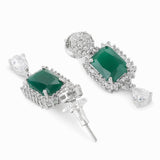 Sparkling Elegance Green and White CZ Brass Silver Plated Jewellery Set