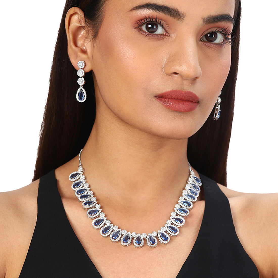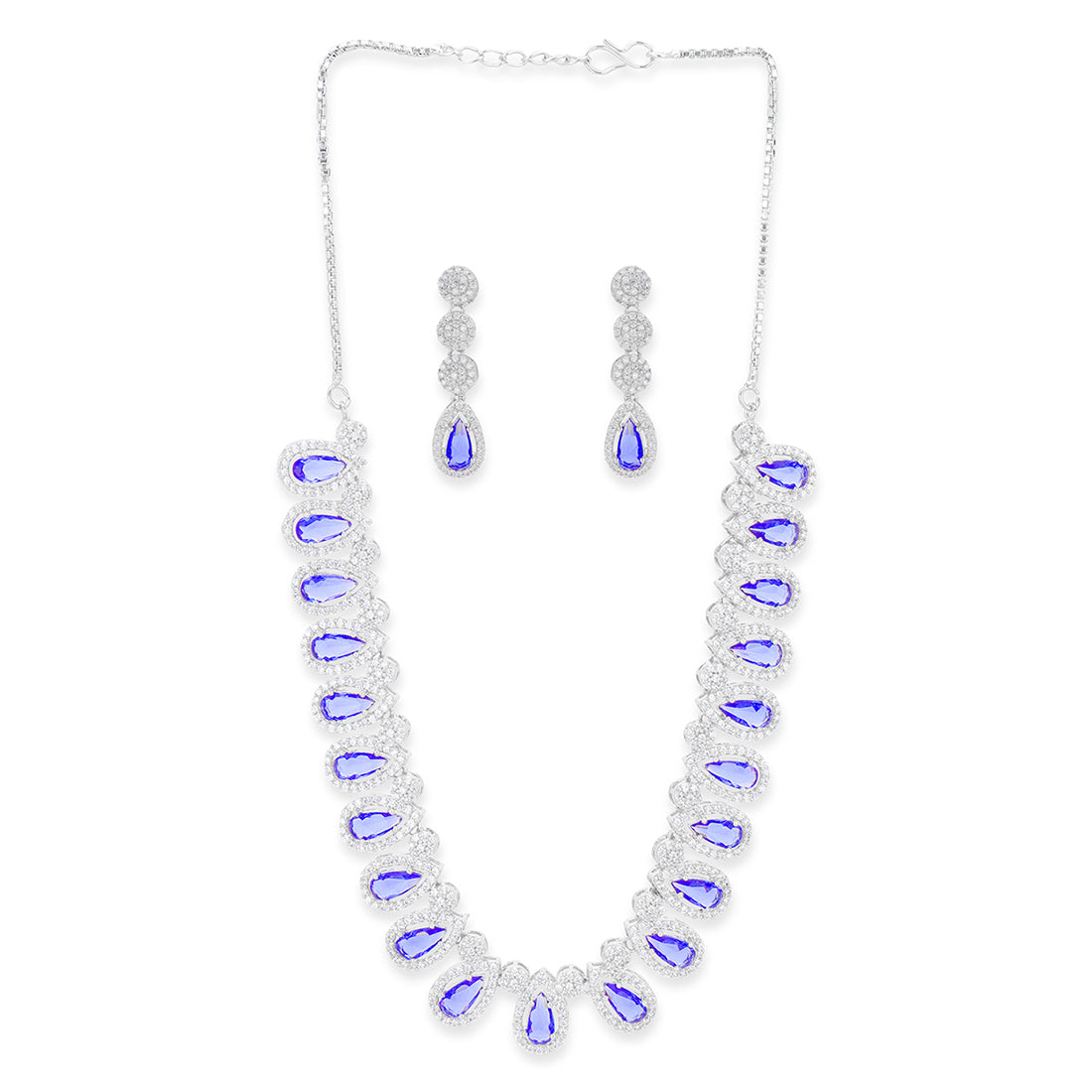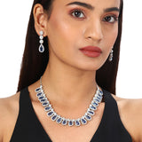 A Necklace designed to fit your trendy aesthetic is an embodiment of glamour withGeneric Silver Brass Necklace Sets Which is light Blue In Colour and oval in shape with Gold Colour Chain easy to Wear .Carry it any time in every session