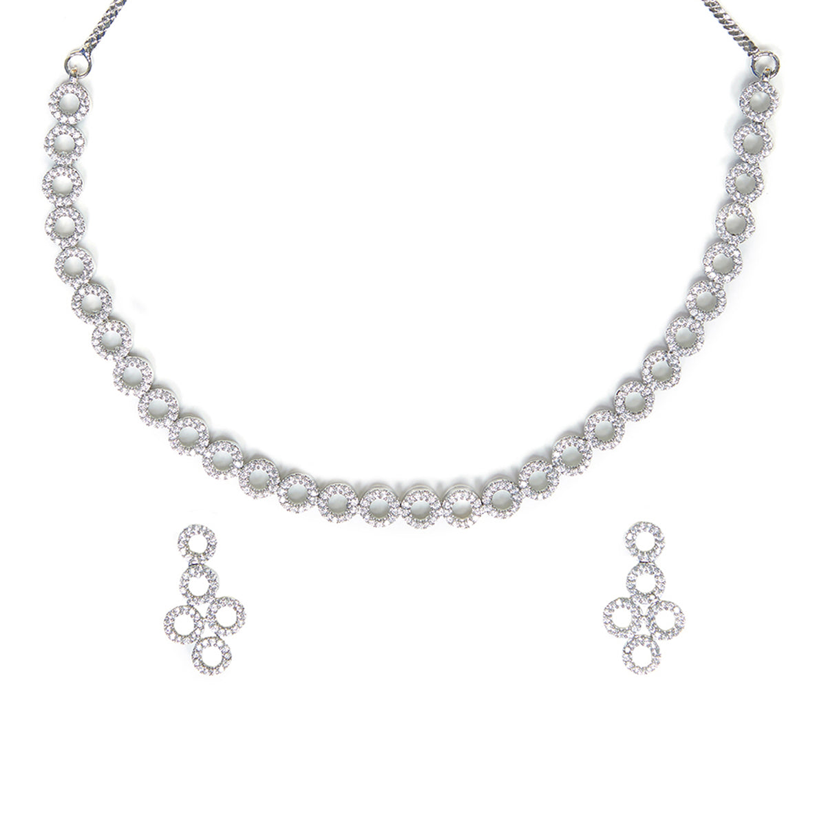Victorian inspired brass necklace set with silver plating. CZ gems adorned. Wear with a cocktail gown.