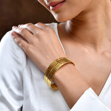 Unleash your inner diva with the Sassy Gold Bracelet from the Voyage Collection. This fabulous piece of jewelry, made from top-notch brass and dipped in glamorous gold plating, is designed to make a statement. The sleek, multi-band design exudes modern elegance and is perfect for everyday wear or special occasions. Whether you're rocking a western outfit or traditional attire, this bracelet will add a touch of sass and sophistication to your look. The radiant gold color complements all skin tones and outfits, making it an ideal gift for any fabulous woman in your life. Perfect for Valentine's Day, Diwali, Rakshabandhan, Christmas, New Year, or just because—this bracelet is a timeless treasure. Whether it's for your sister, girlfriend, wife, mother, or yourself, the Sassy Gold Bracelet is the ultimate accessory that will make you shine bright like a diamond.