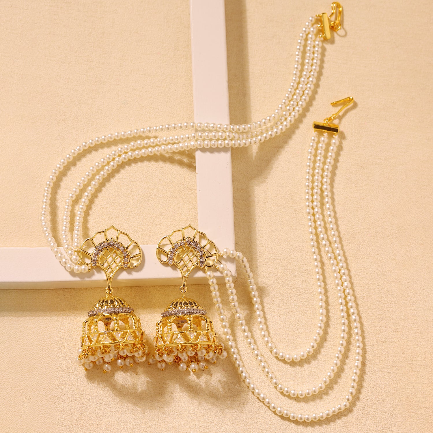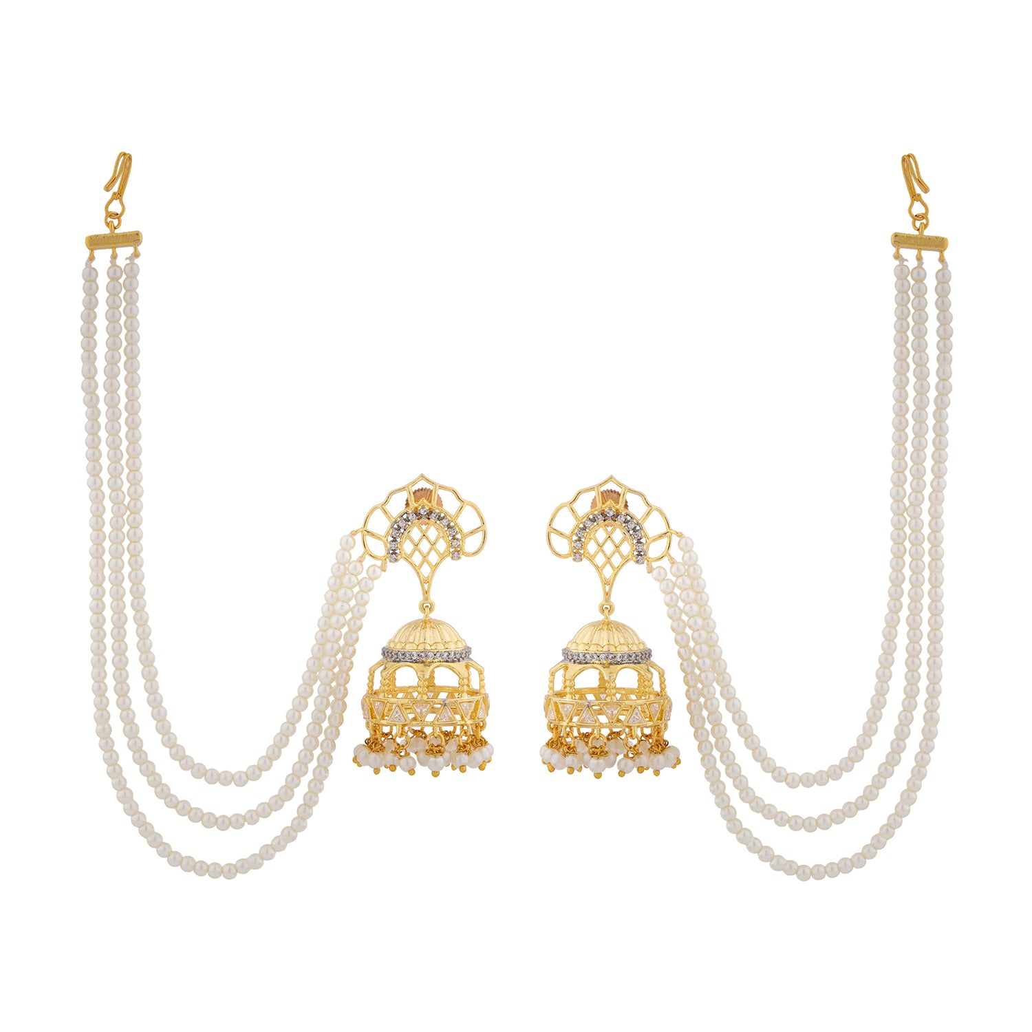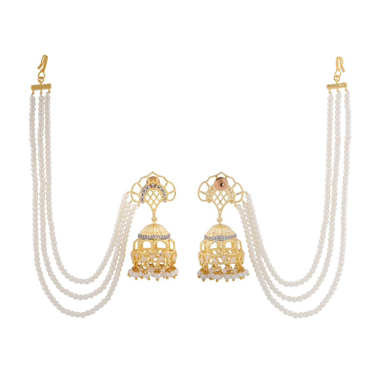 Shahi Dwar Royal Pearl Jhumka Earrings with Chain