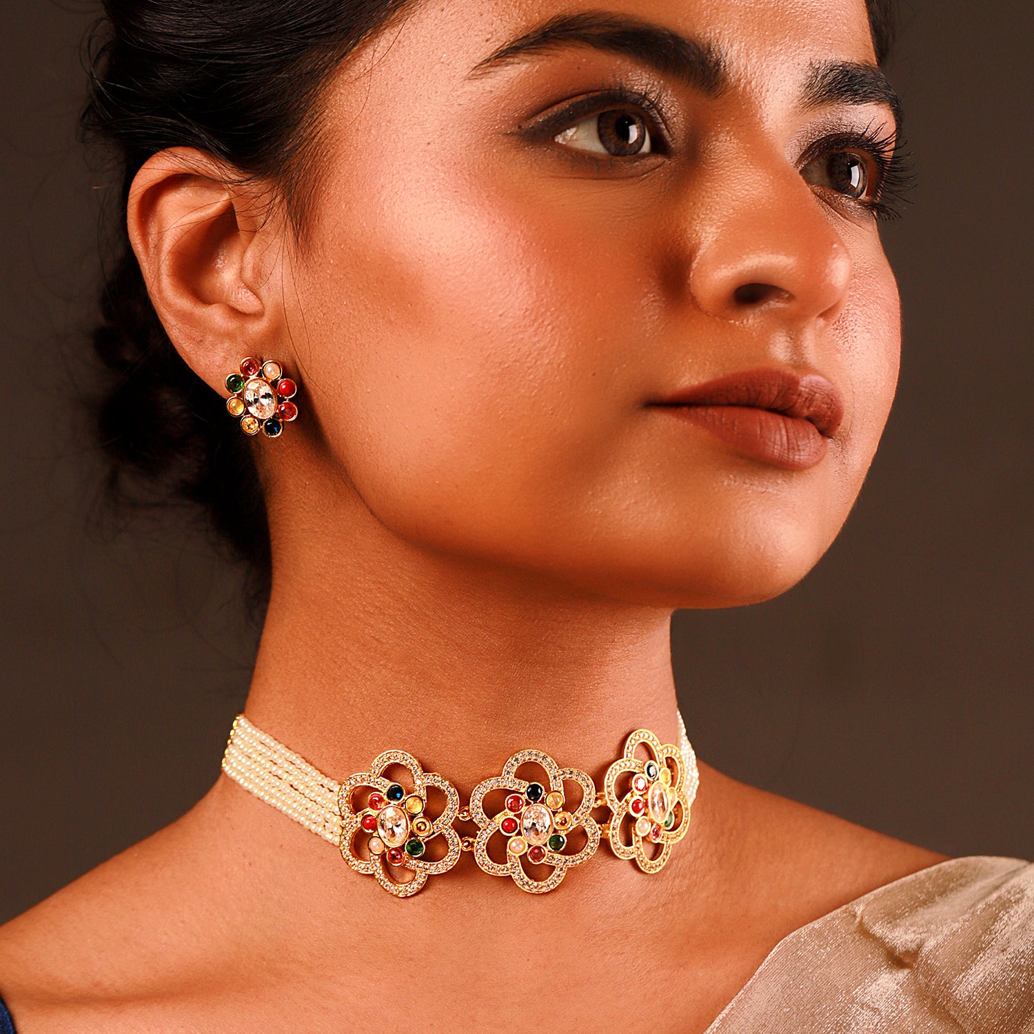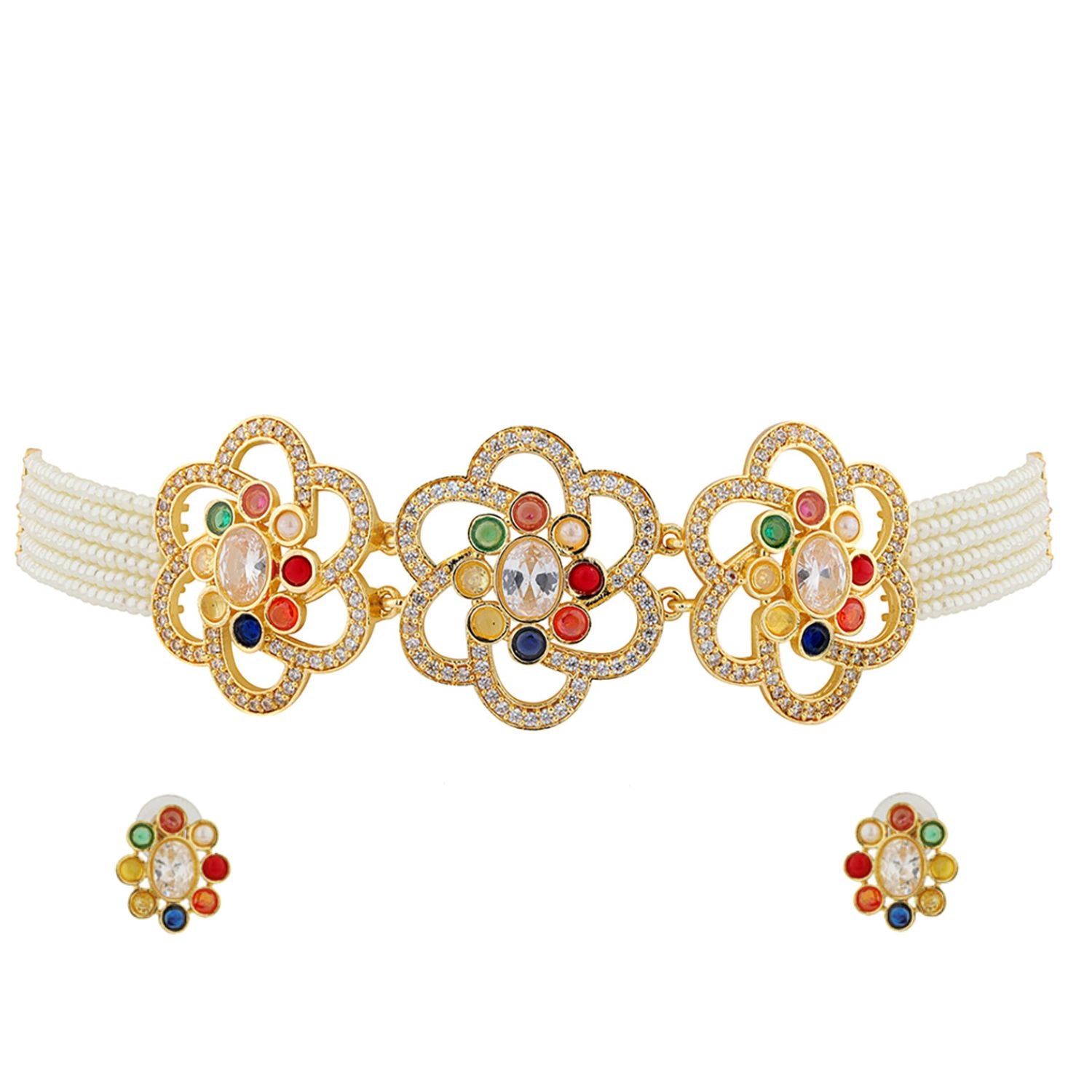 Navratan Floral Harmony Choker Necklace Set