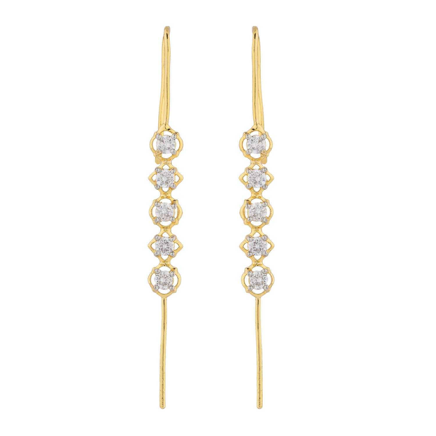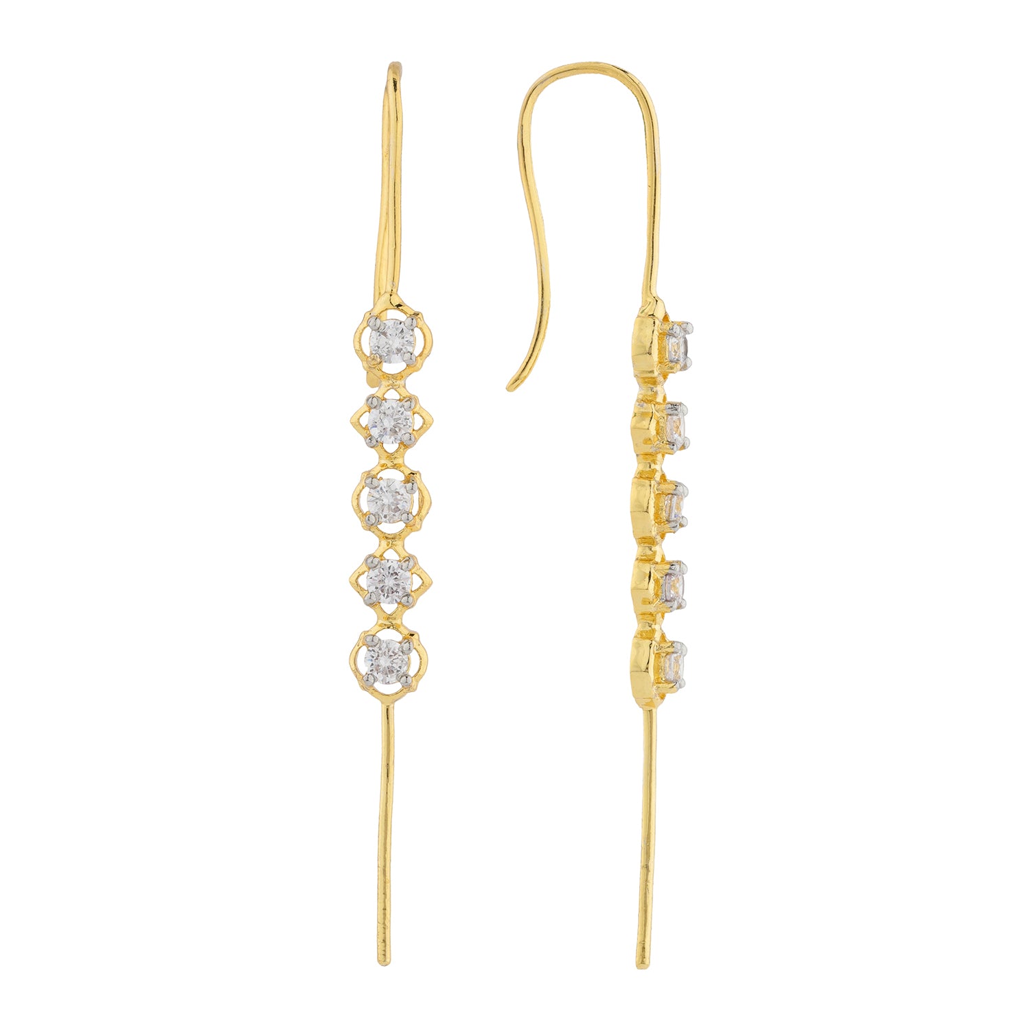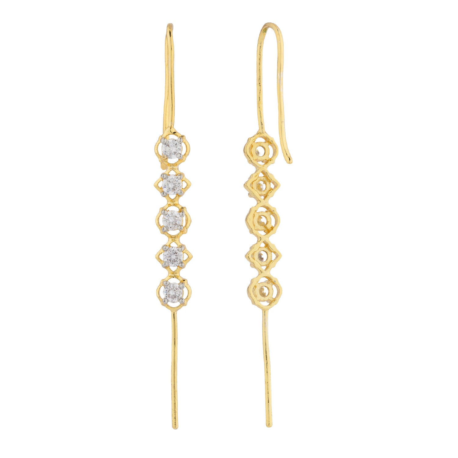 The Shahi Dwar Kumud Pin Earrings bring together minimalist beauty and royal inspiration in a design that’s both elegant and effortlessly wearable. Inspired by the Shahi Dwar Collection, which pays homage to Jaipur’s timeless palace arches, these earrings reinterpret royal craftsmanship through a contemporary lens, sleek, structured, and full of radiant sparkle. Crafted from high-quality brass and finished with luxurious yellow gold plating, these designer earrings feature a vertical line of precisely set CZ American diamonds that resemble delicate lotus buds (Kumud). The slender, elongated shape flatters every face type, creating an illusion of length and elegance. Lightweight yet striking, the Kumud Pin Earrings are perfect for women who prefer understated sophistication, the kind of accessory that complements every outfit without overpowering it. Whether it’s a cocktail evening, festive gathering, or a wedding celebration, these stylish earrings bring subtle luxury and grace to every occasion.
