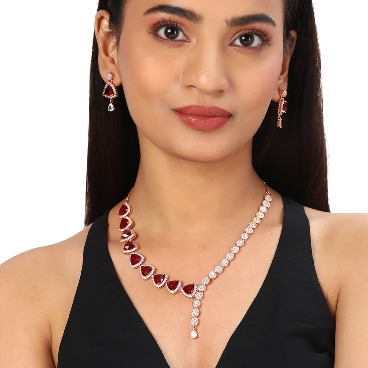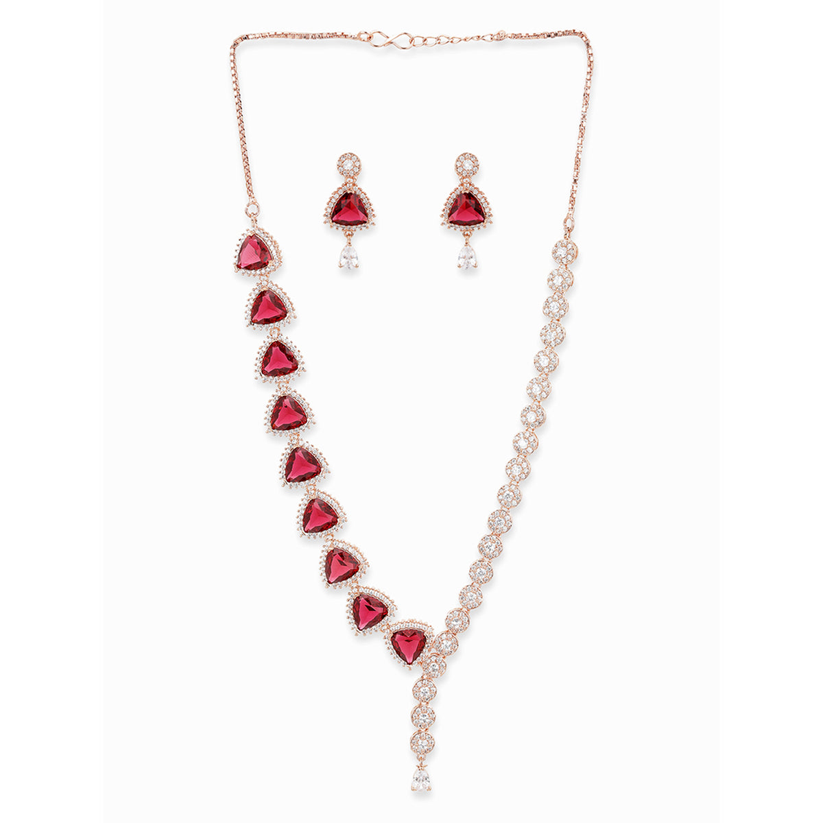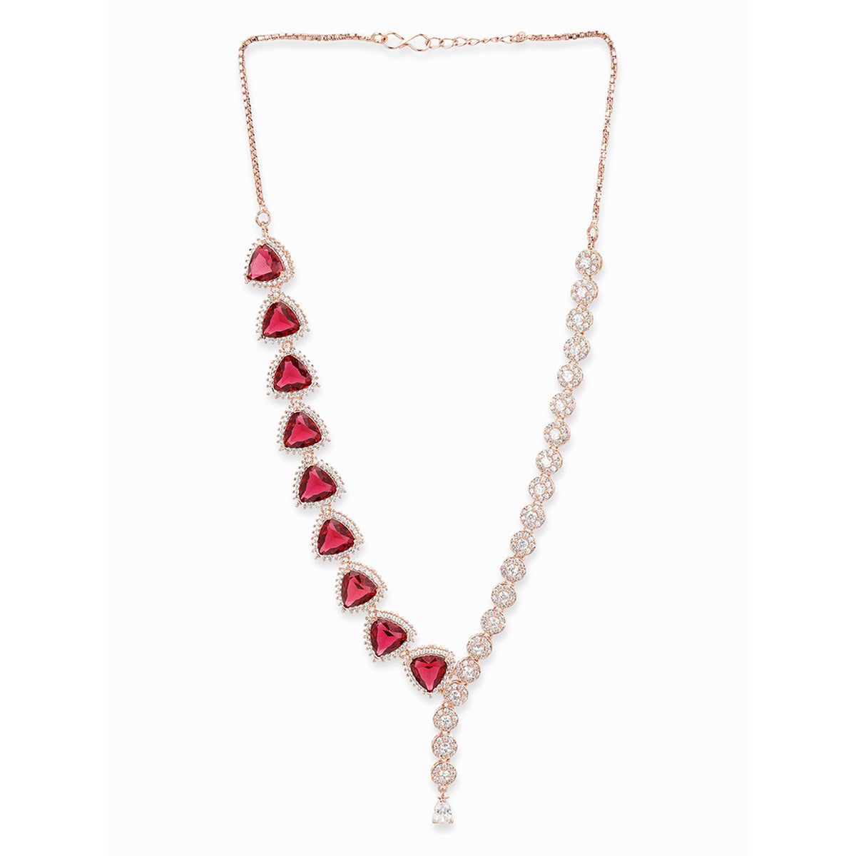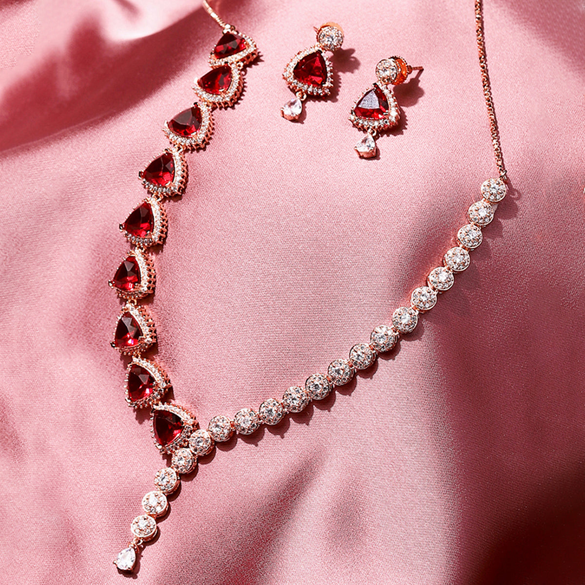 Sparkling Essential Red Cz Studded Heart Shaped Gold Plated Mangalsutra Set