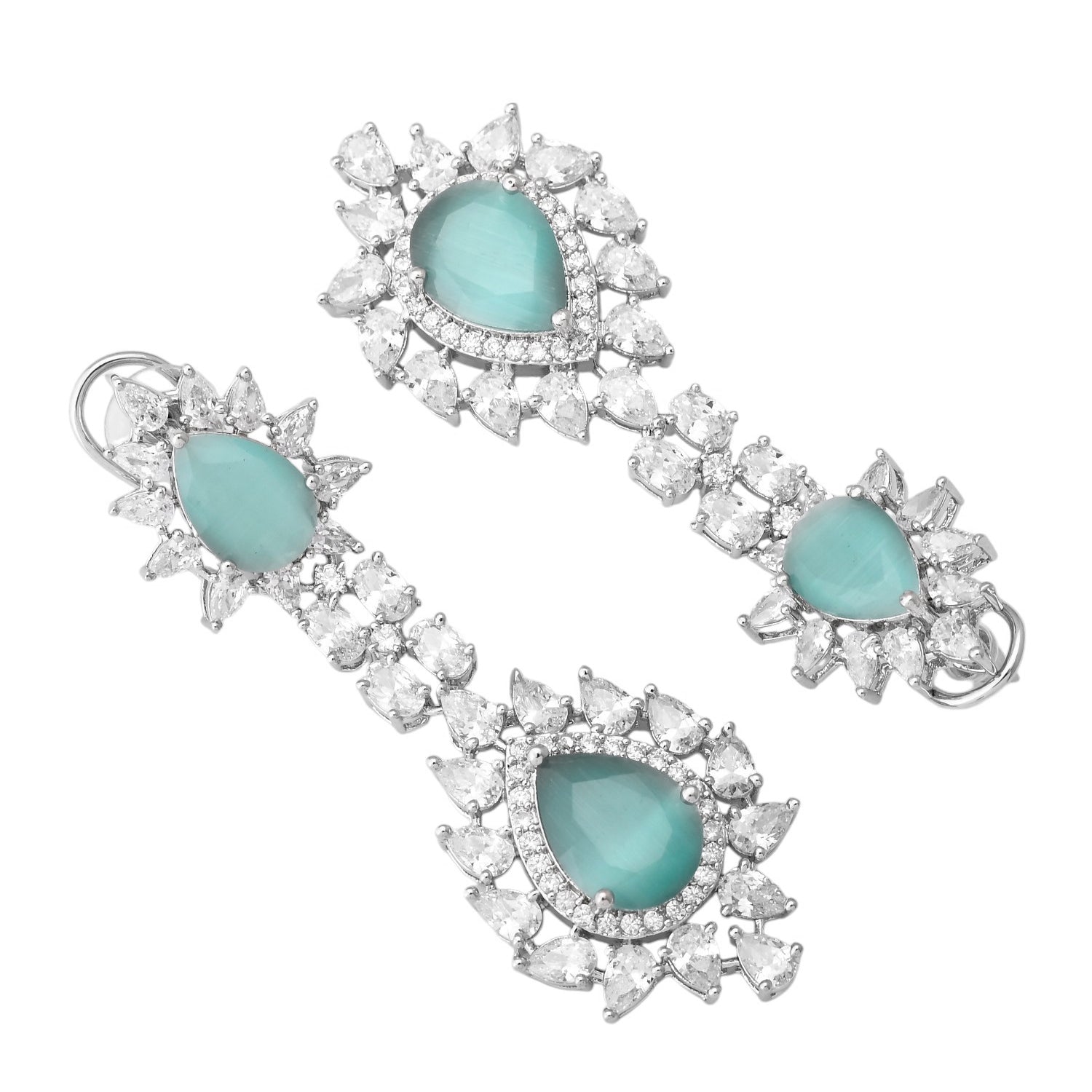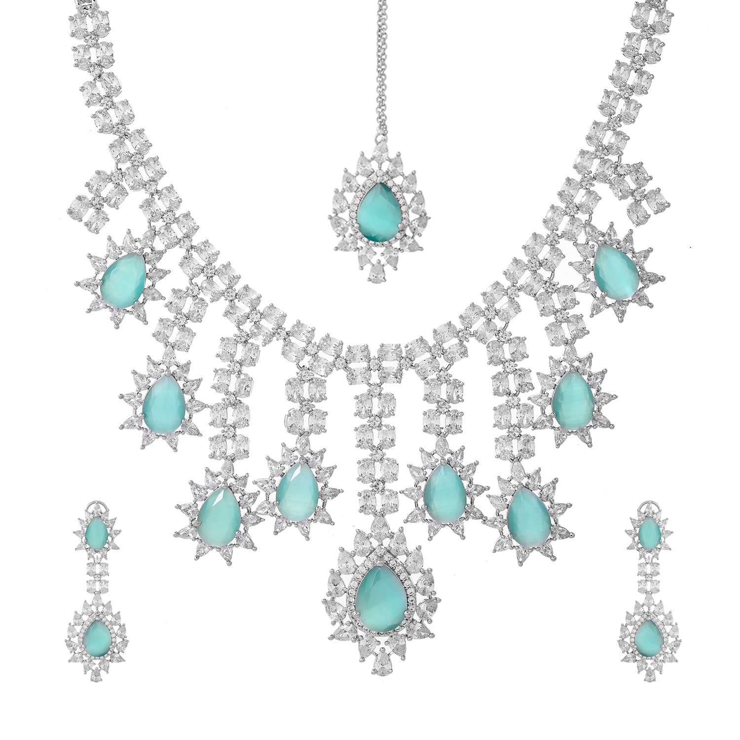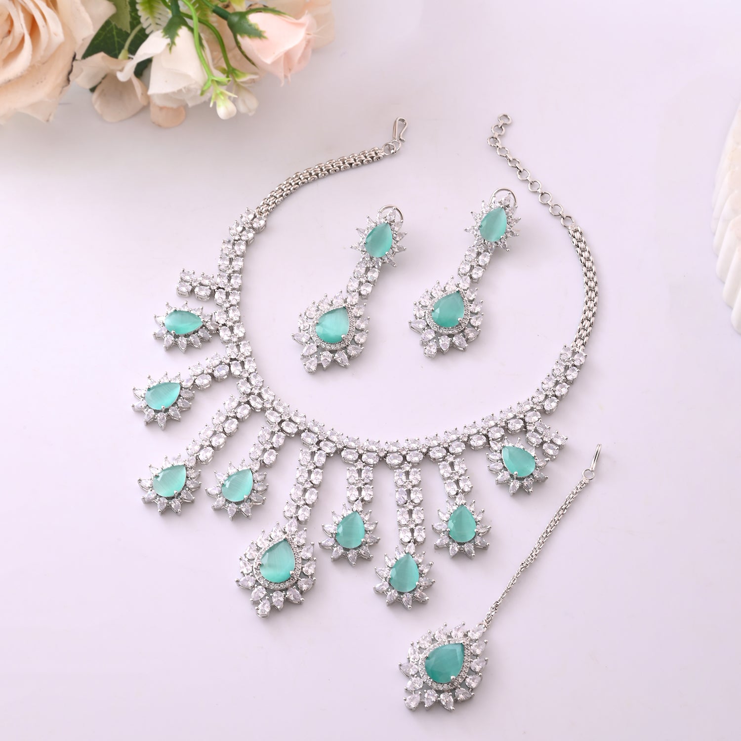 Sparkling Elegance Dazzling Turquoise American Diamond Maang Tikka Set