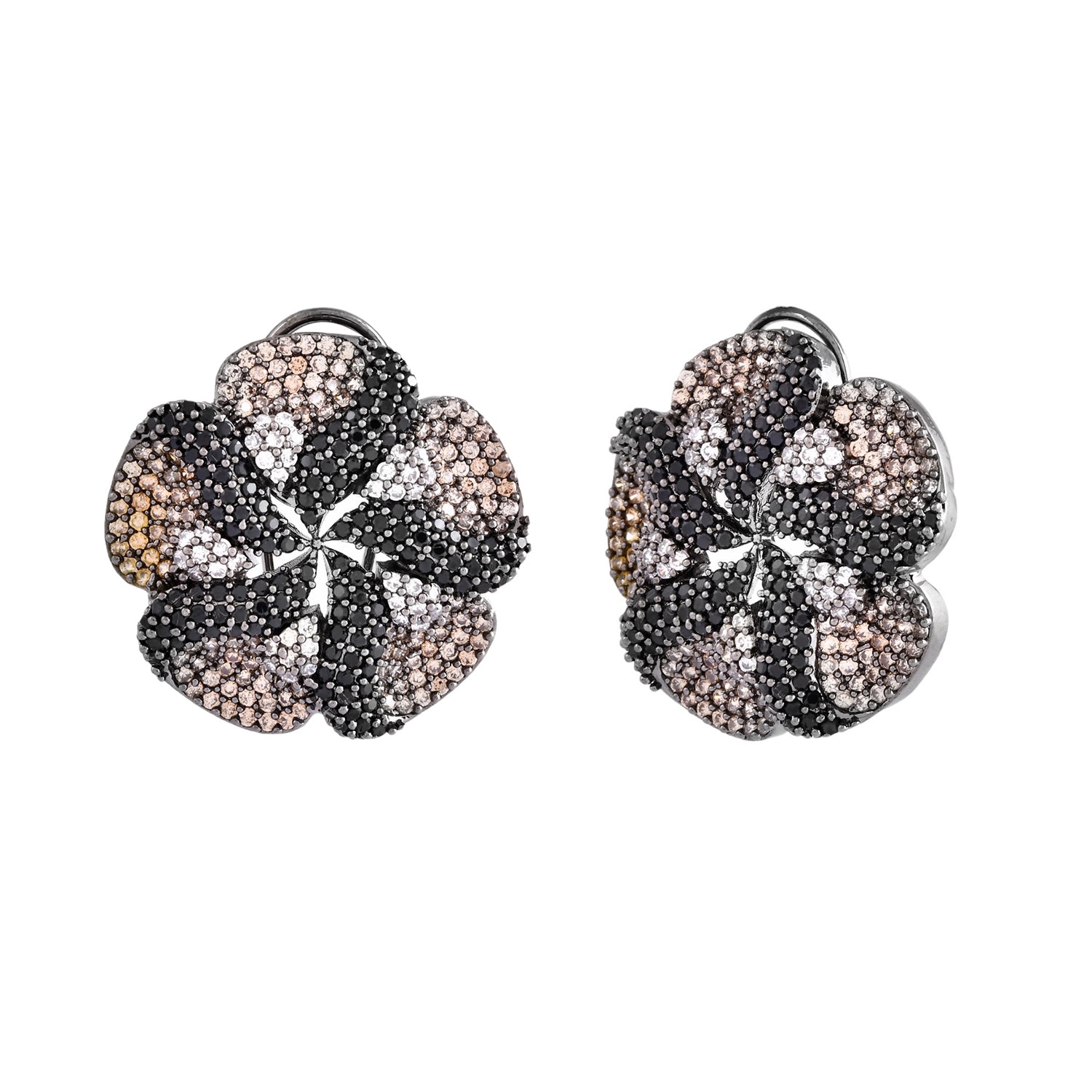 Fashioned from high-quality brass, the earrings feature a Rhodium plating that adds depth and sophistication to their appearance. The highlight of these earrings is the intricate arrangement of American diamond stones, which are meticulously placed to form a captivating floral pattern. Each petal sparkles with cubic zirconia, reflecting light beautifully and creating an enchanting effect that is sure to turn heads.The neutral color palette ensures versatility, making these earrings suitable for wedding wear, party wear, or even as an opulent addition to festive and pooja attire. Whether you’re attending a Diwali celebration, Rakshabandhan festivities, or simply want to gift something special to your sister or mother, these American diamond earrings are the perfect choice. They embody the essence of luxury and are designed for those who seek accessories that are both stylish and meaningful.