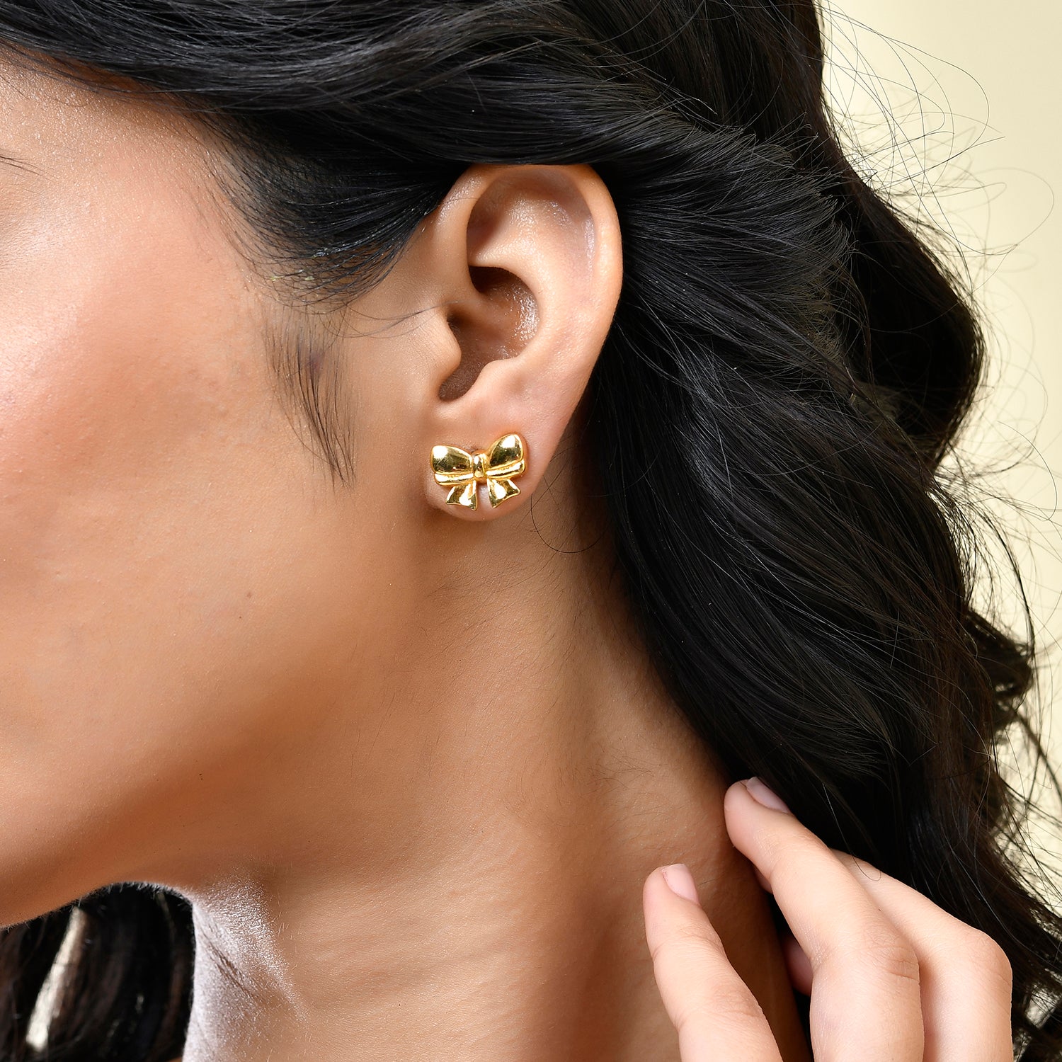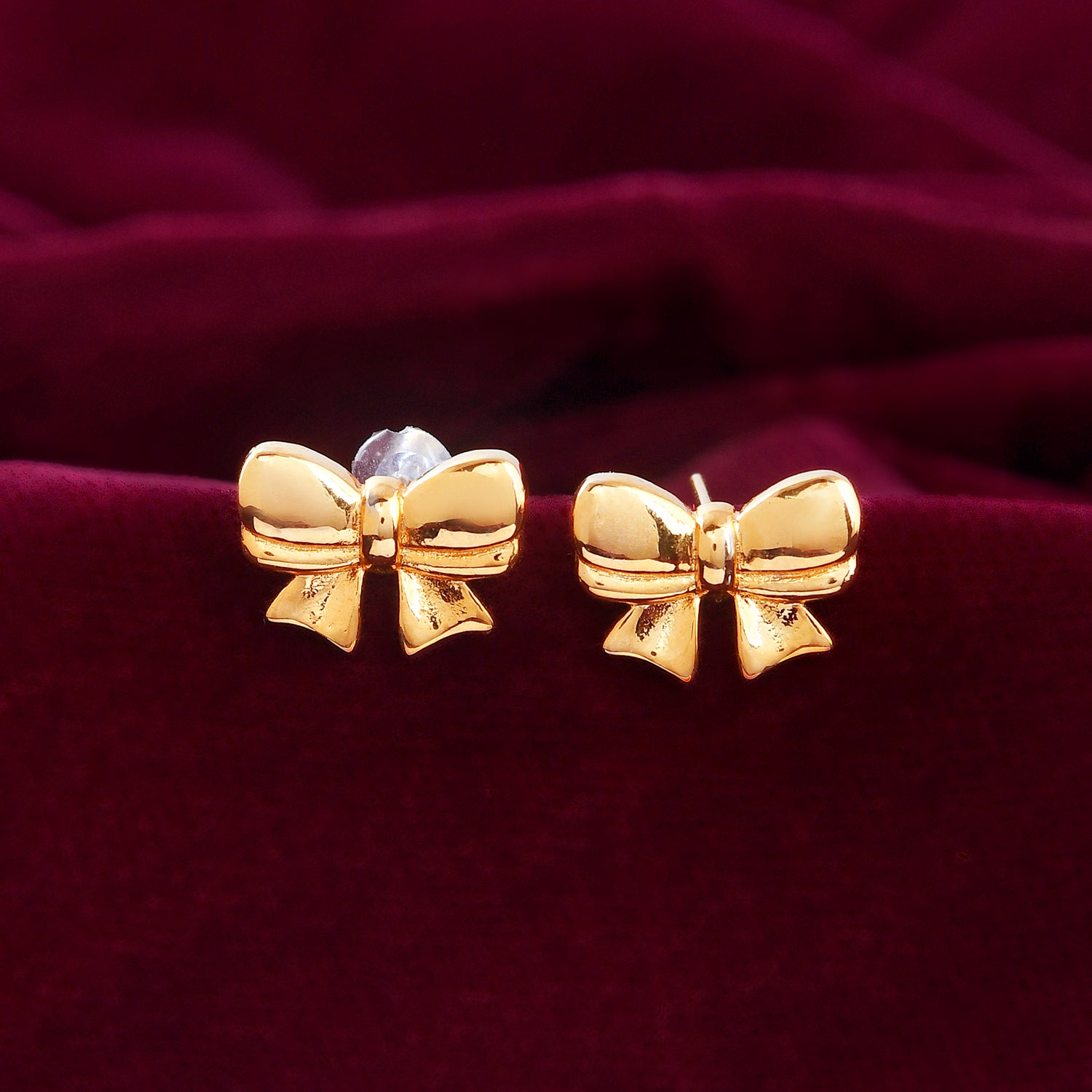 Introducing the Trendy Cupid's Bow Stud Earrings, a perfect blend of elegance and charm. Crafted from high-quality brass and plated with a luxurious gold finish, these earrings feature a delicate bow design that exudes sophistication. Part of our exclusive Trendy Earrings collection, these studs are versatile enough for daily wear, festive occasions, weddings, and even vacations. The rich gold color adds a touch of glamour, making them an ideal gift for women on Valentine's Day, Diwali, Rakshabandhan, Christmas, New Year, or any special occasion. Whether you're styling them with a casual outfit or a party dress, these earrings are sure to make a statement. Perfect for gifting to sisters, girlfriends, wives, mothers, or any loved one, these earrings are a timeless addition to any jewelry collection.