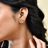 Discover the epitome of elegance with our Trendy Twinkling Bows Stud Earrings. Crafted from high-quality brass and adorned with luxurious gold plating, these earrings feature a delicate bow design encrusted with sparkling American diamonds, making them a perfect addition to...