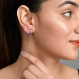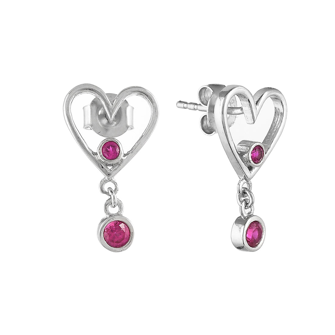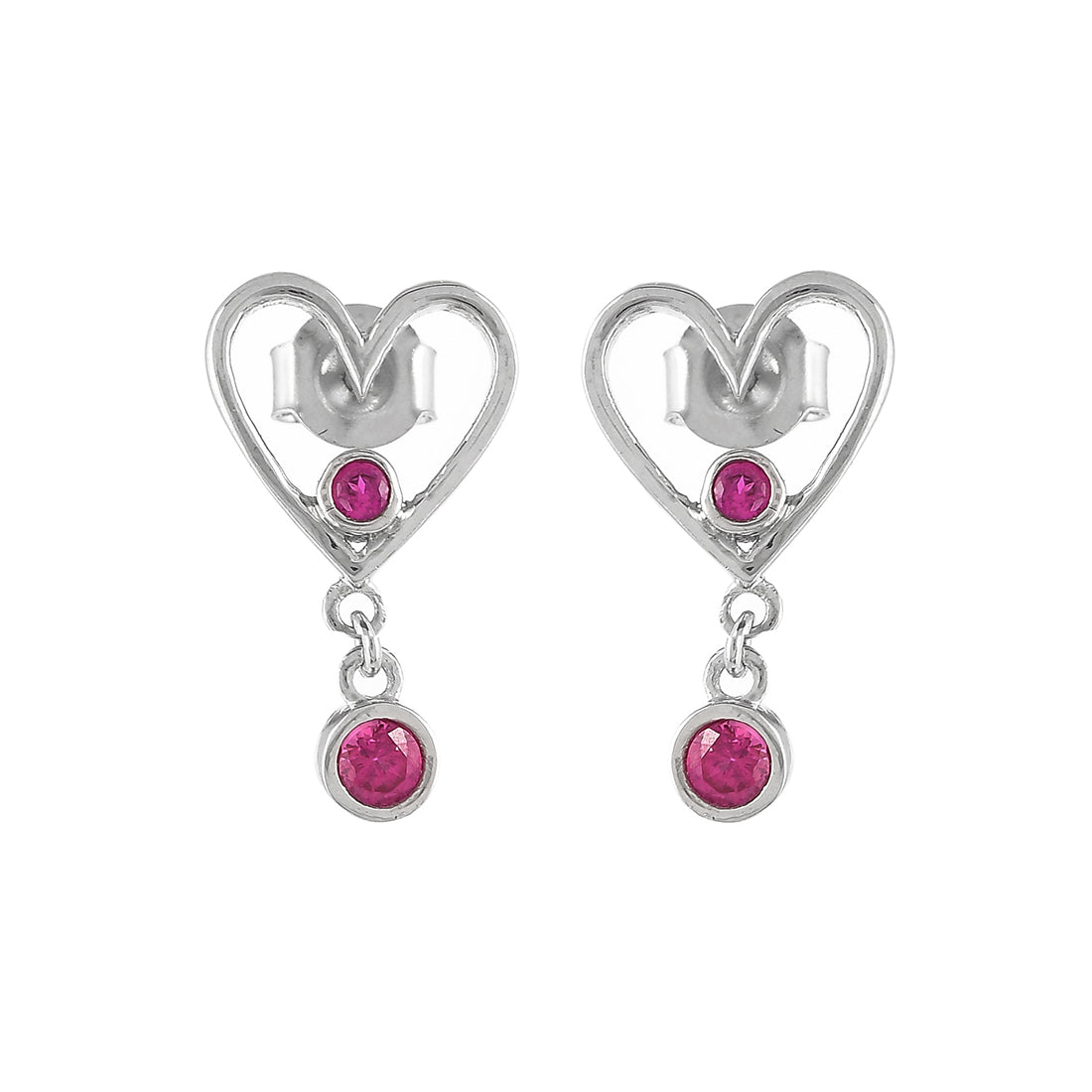 Sterling silver pink CZ gems adorned heart drop earrings with white rhodium plating. The versatile and charming pair will make the perfect V Day gift for your loved one. Wear with just about any of your favourite outfits.