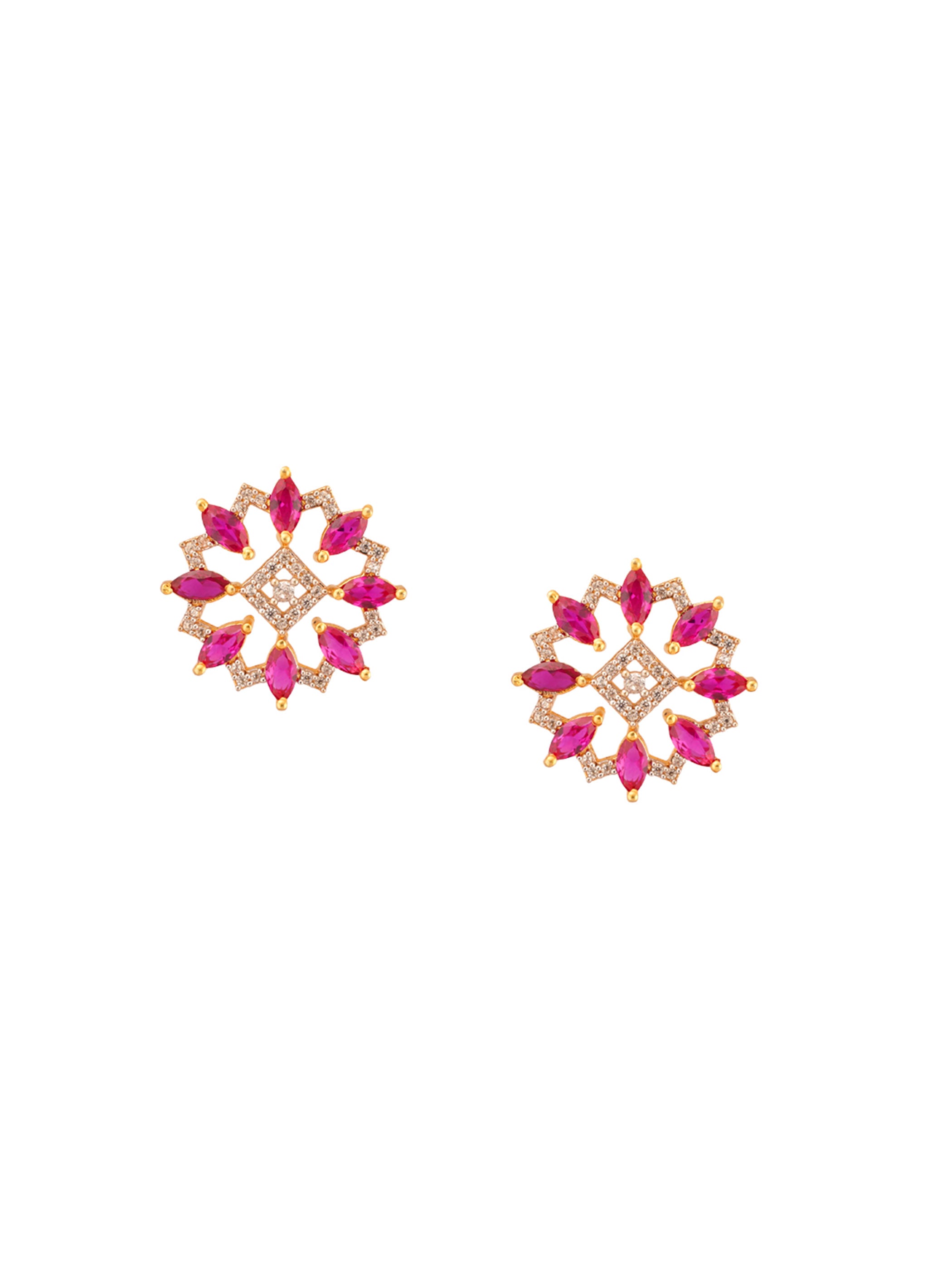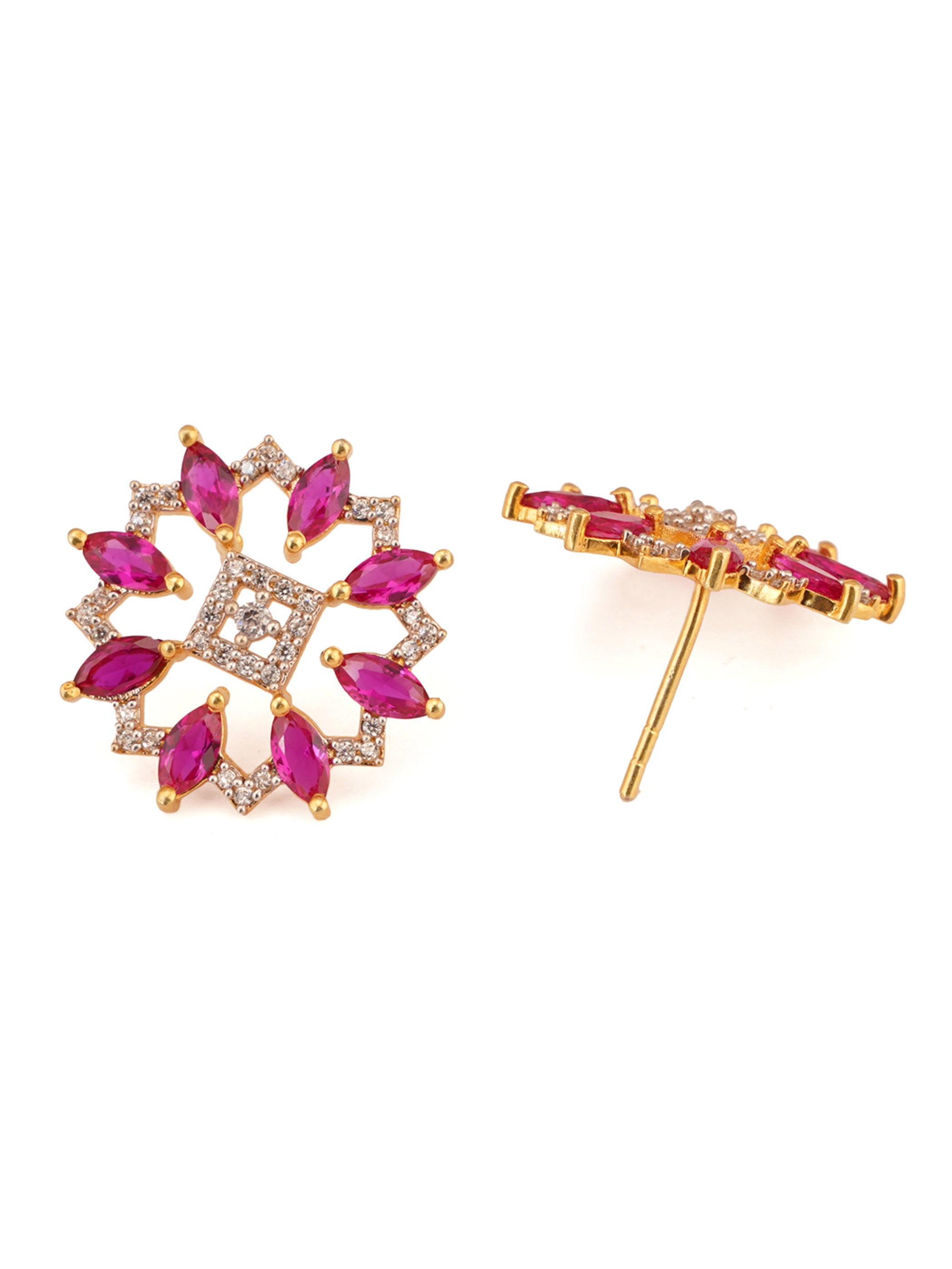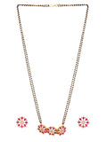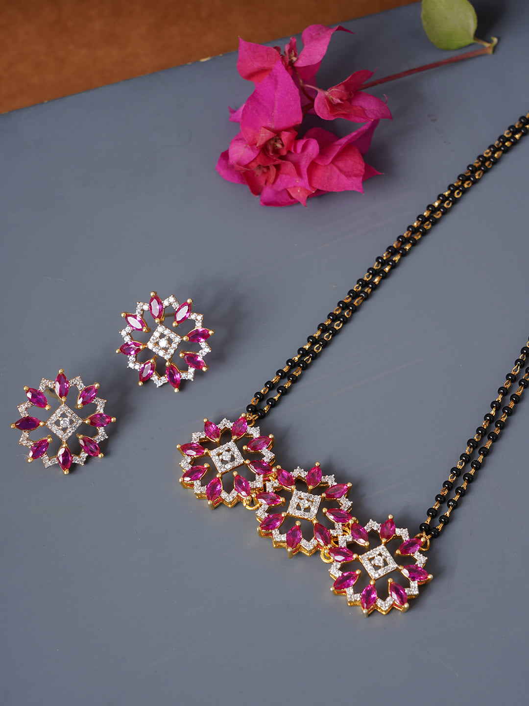 Shimmering Floret American Diamond CZ Gold Plated Brass Black Beaded Mangalsutra with and Red Studs