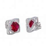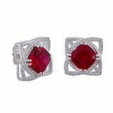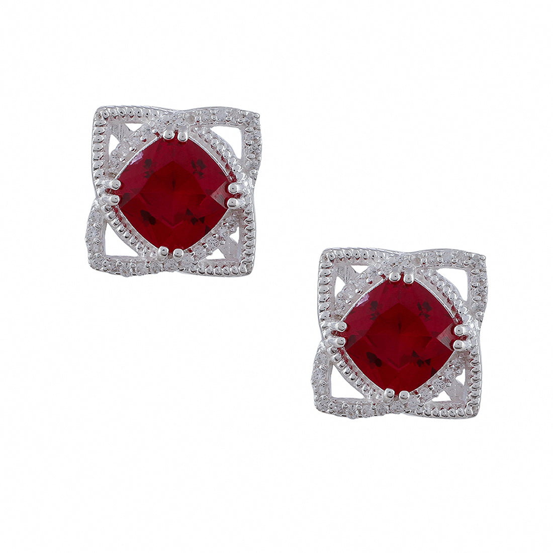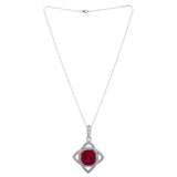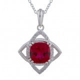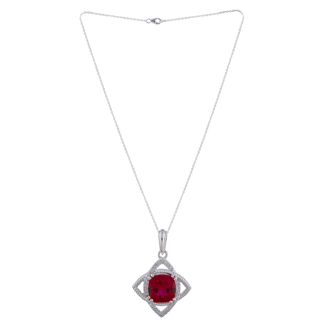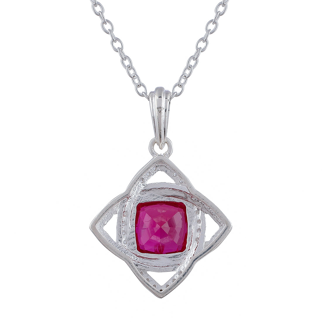CZ Embellished And Red Stone Studded Sterling Silver Pendant Set