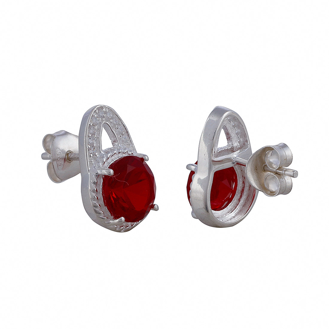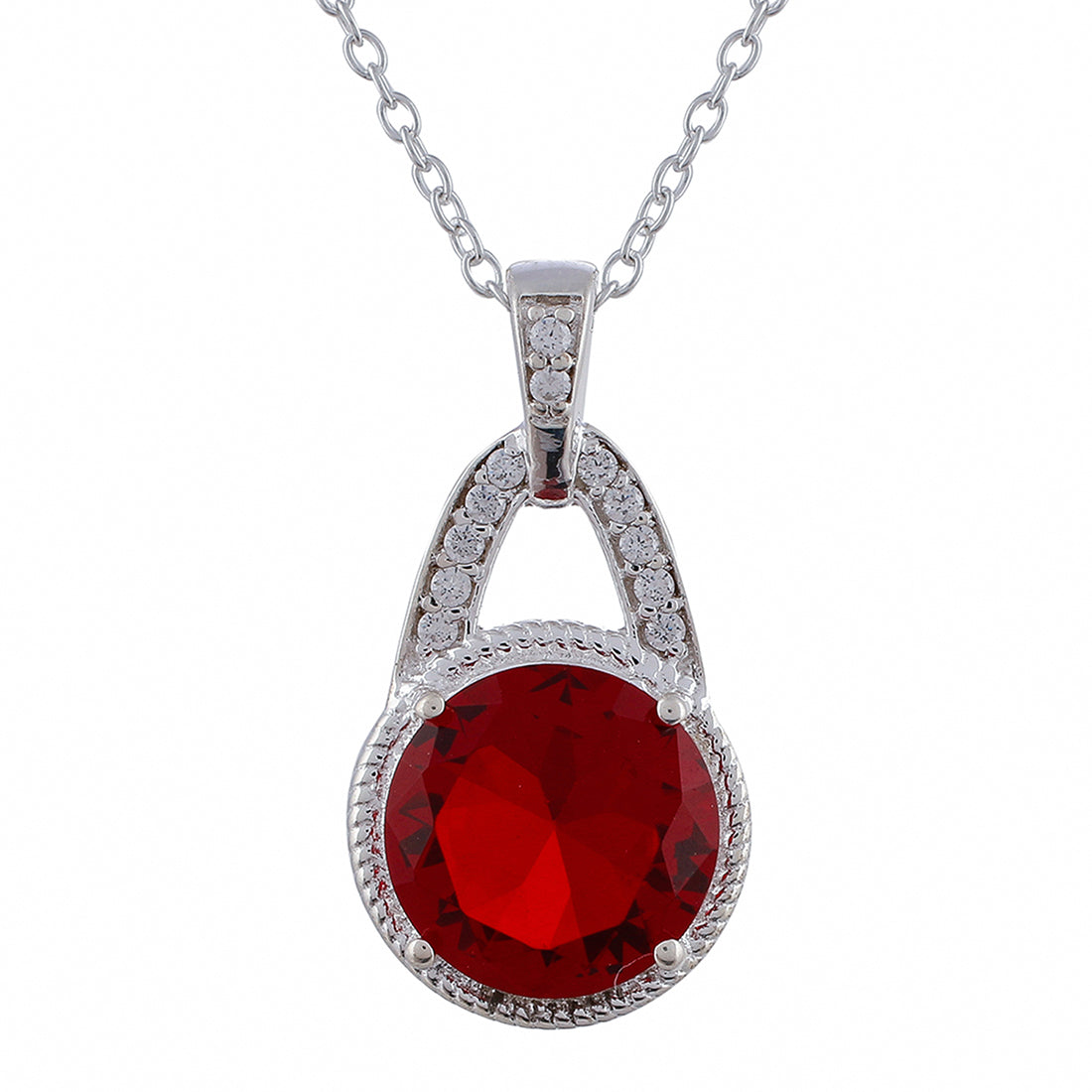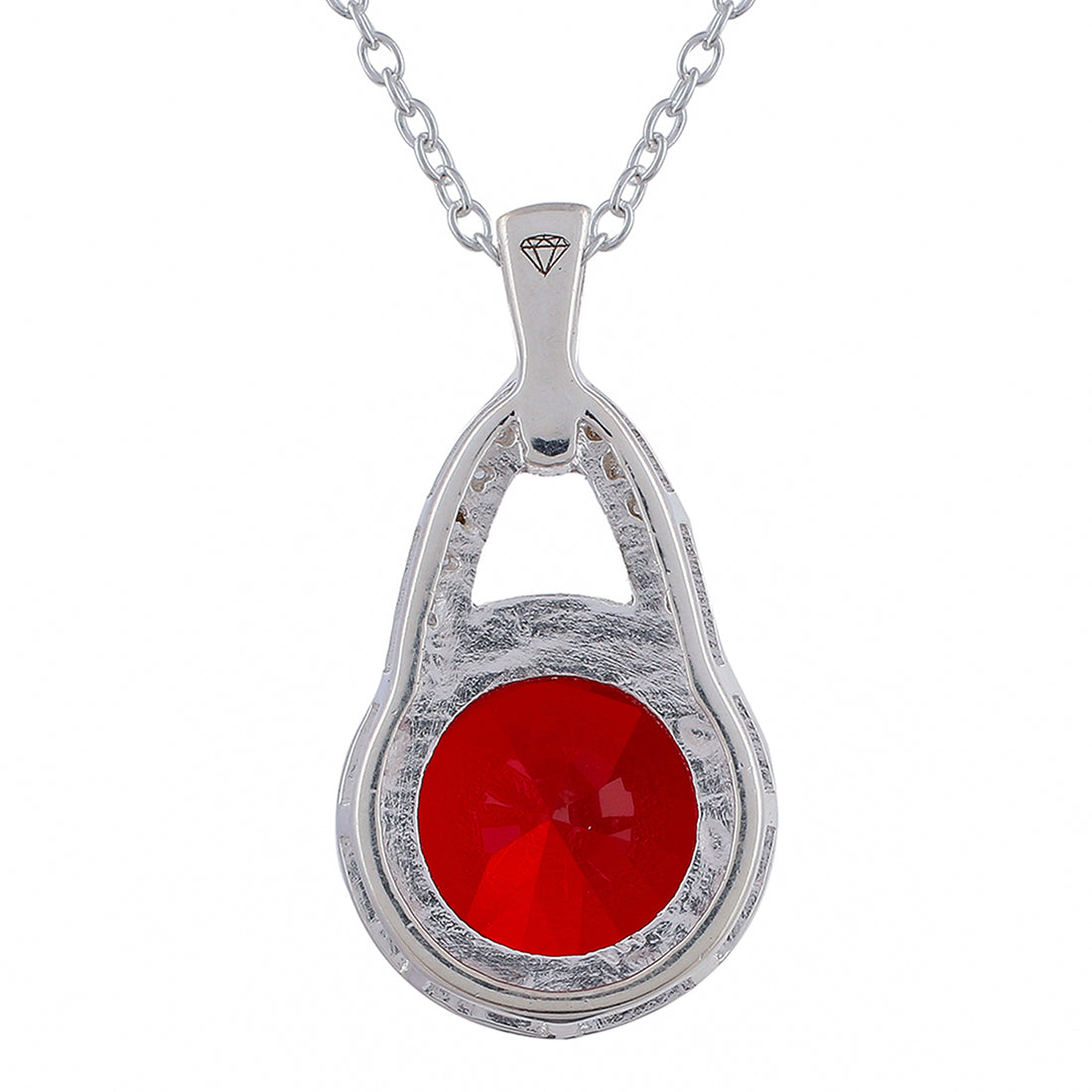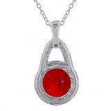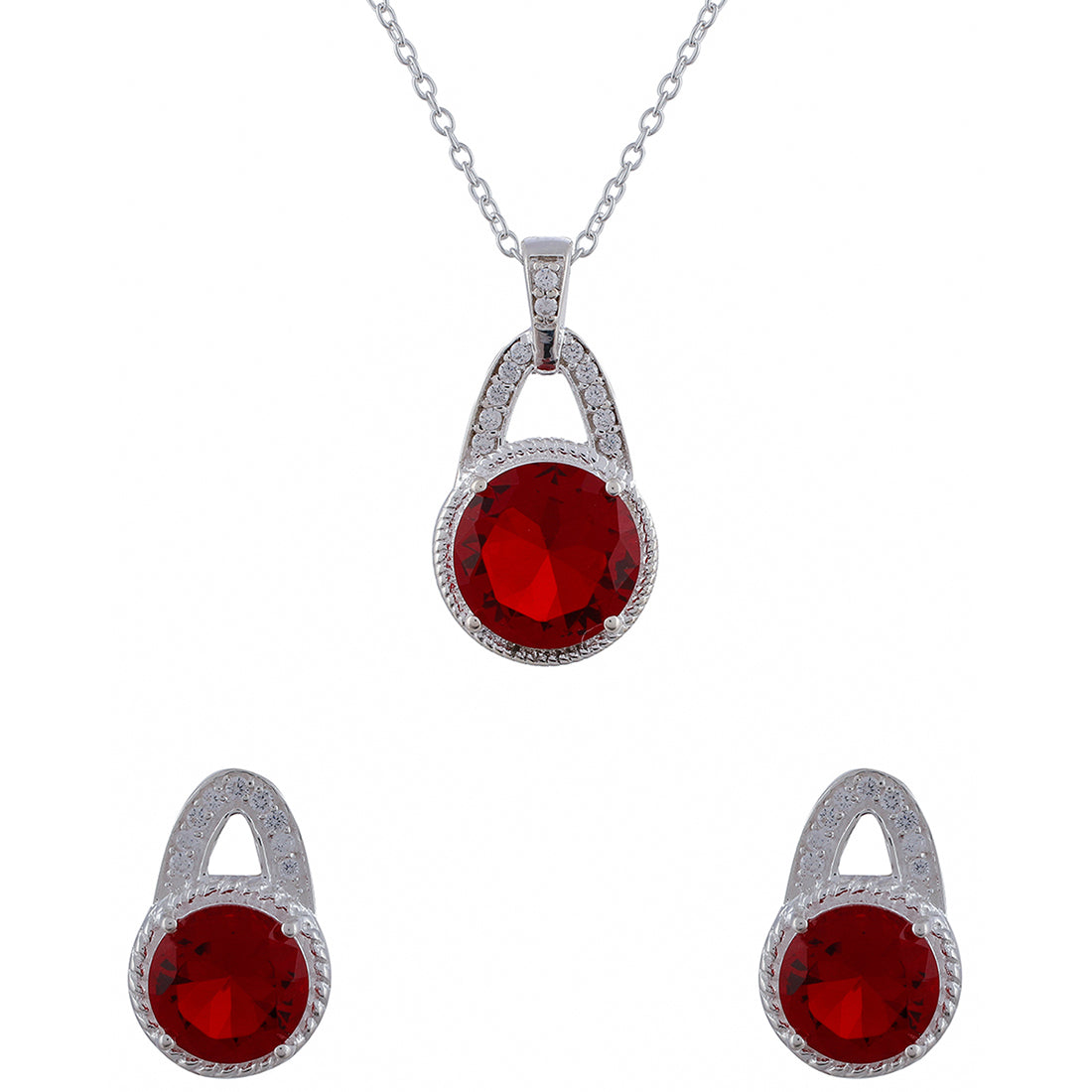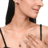 Red Stone Studded 925 Sterling Silver Pendant Set