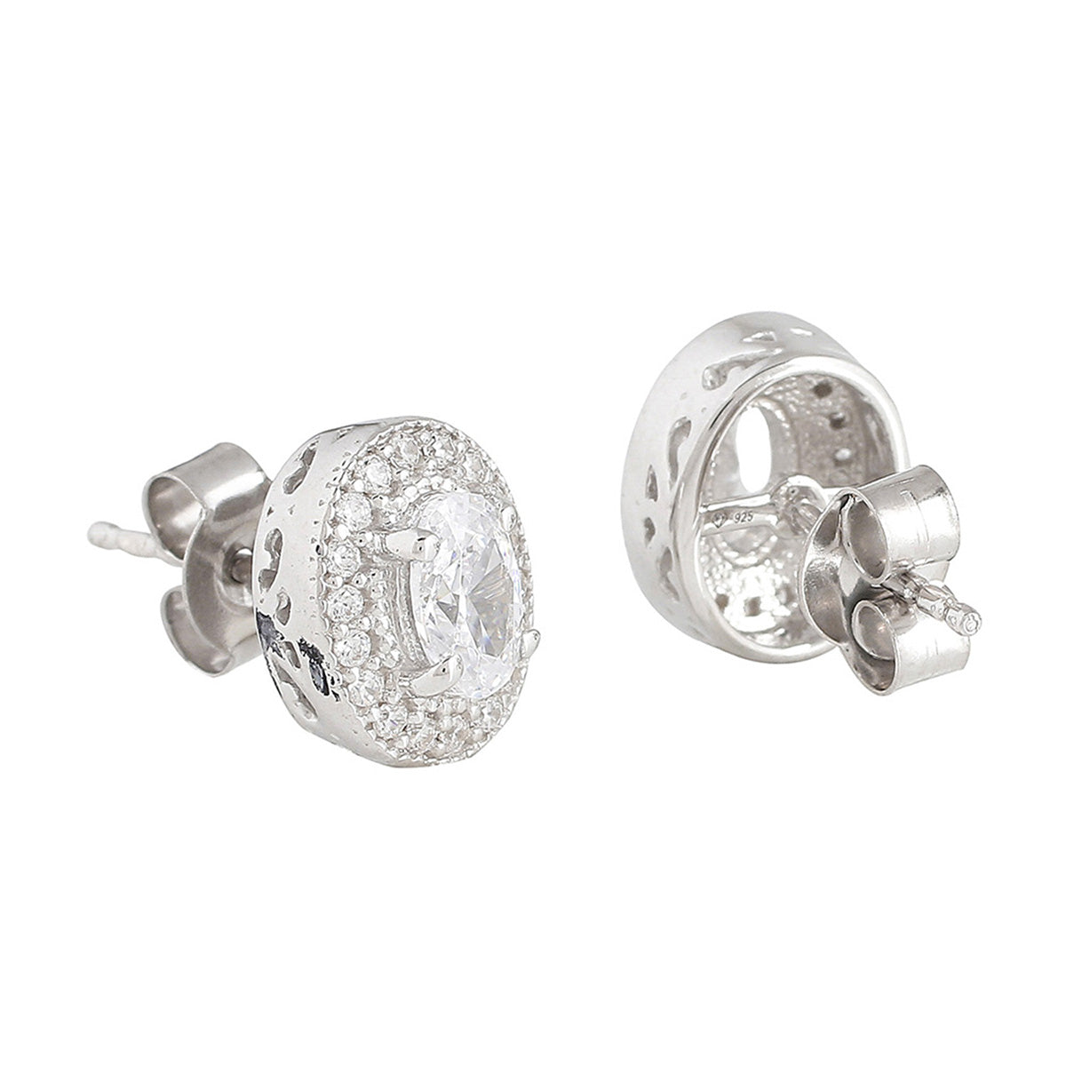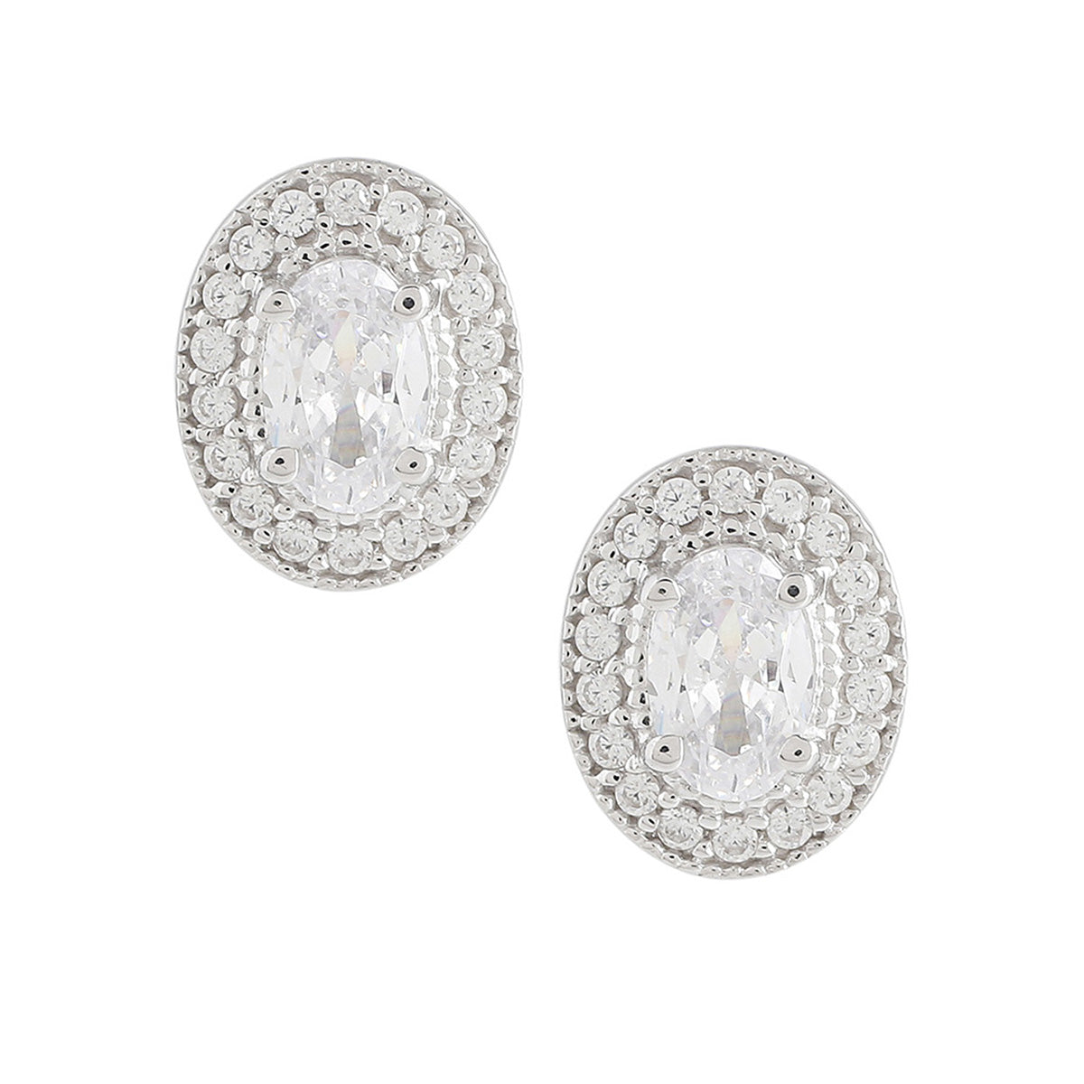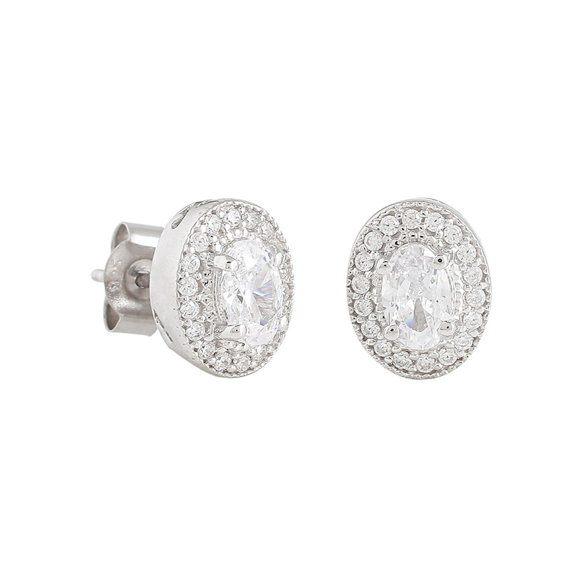 925 Sterling Silver CZ Oval Shaped Stud Earrings
