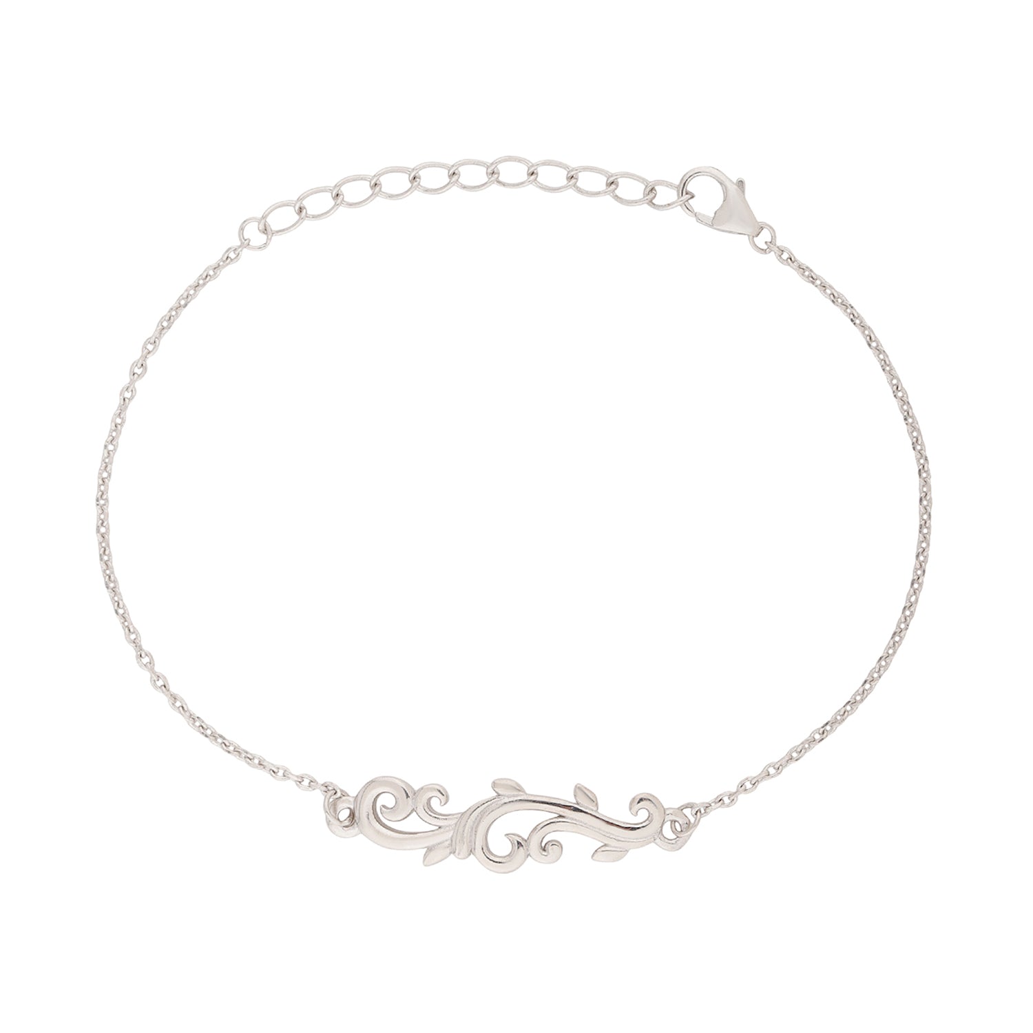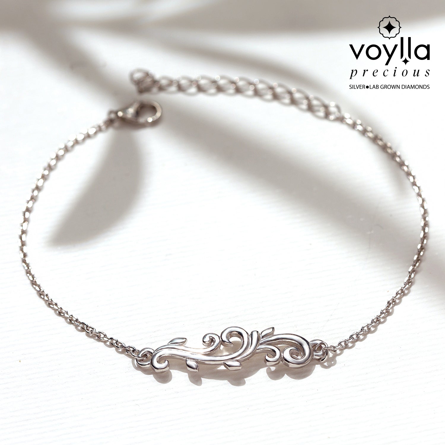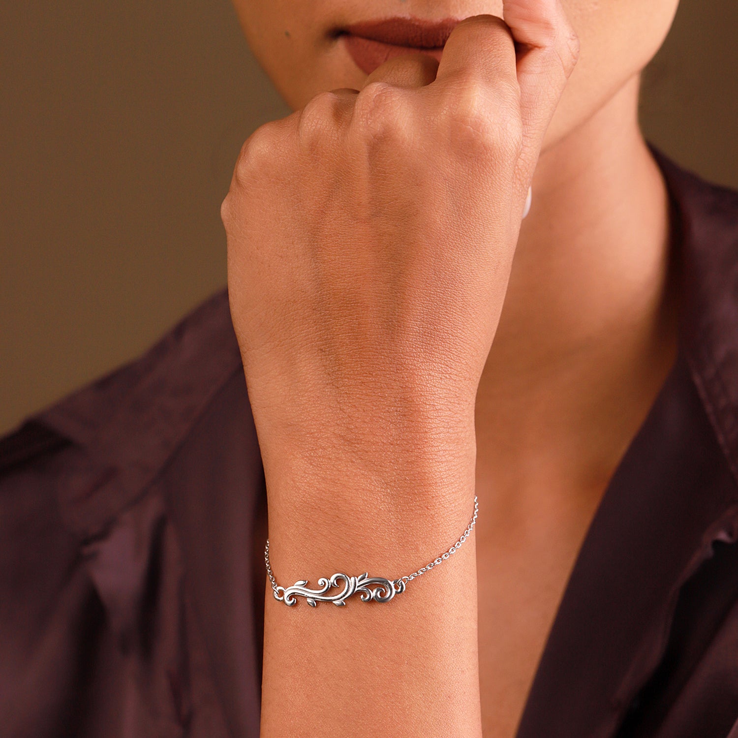 The Vines Tangle & Bloom Bracelet is a timeless expression of nature’s beauty, symbolizing resilience and elegance. Inspired by the intertwining growth of vines and the delicate charm of blooming flowers, this bracelet represents the journey of overcoming challenges and thriving with grace. A signature design from the Vines Collection, it embodies versatility, strength, and sophistication. Expertly crafted in 925 sterling silver with a sleek white rhodium plating, this bracelet offers durability, tarnish resistance, and a radiant finish. Its flowing vine-like pattern with delicate curls and bloom-inspired details creates a simple yet minimalistic design that is both modern and symbolic. Perfect for daily wear jewellery, the bracelet adapts effortlessly from office workwear to casual outings and even festive evenings. Its elegant design makes it easy to wear alone for refined sophistication or layer with other bracelets for a chic, contemporary style. More than just an accessory, the sterling silver bracelet also makes a meaningful gift for women, a romantic gift for your lover, or a thoughtful choice for silver gifting on birthdays, anniversaries, and festive occasions.