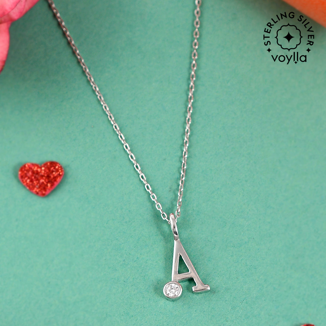 Minimalistic Alphabet A pendant with silver chains,studded with cubic zircons.Crafted in 925 Silver with a High Polish Finish .Caring for your fashion jewelry: We, at Voylla, take care of every piece of jewelry so that you don't spend hours caring...
