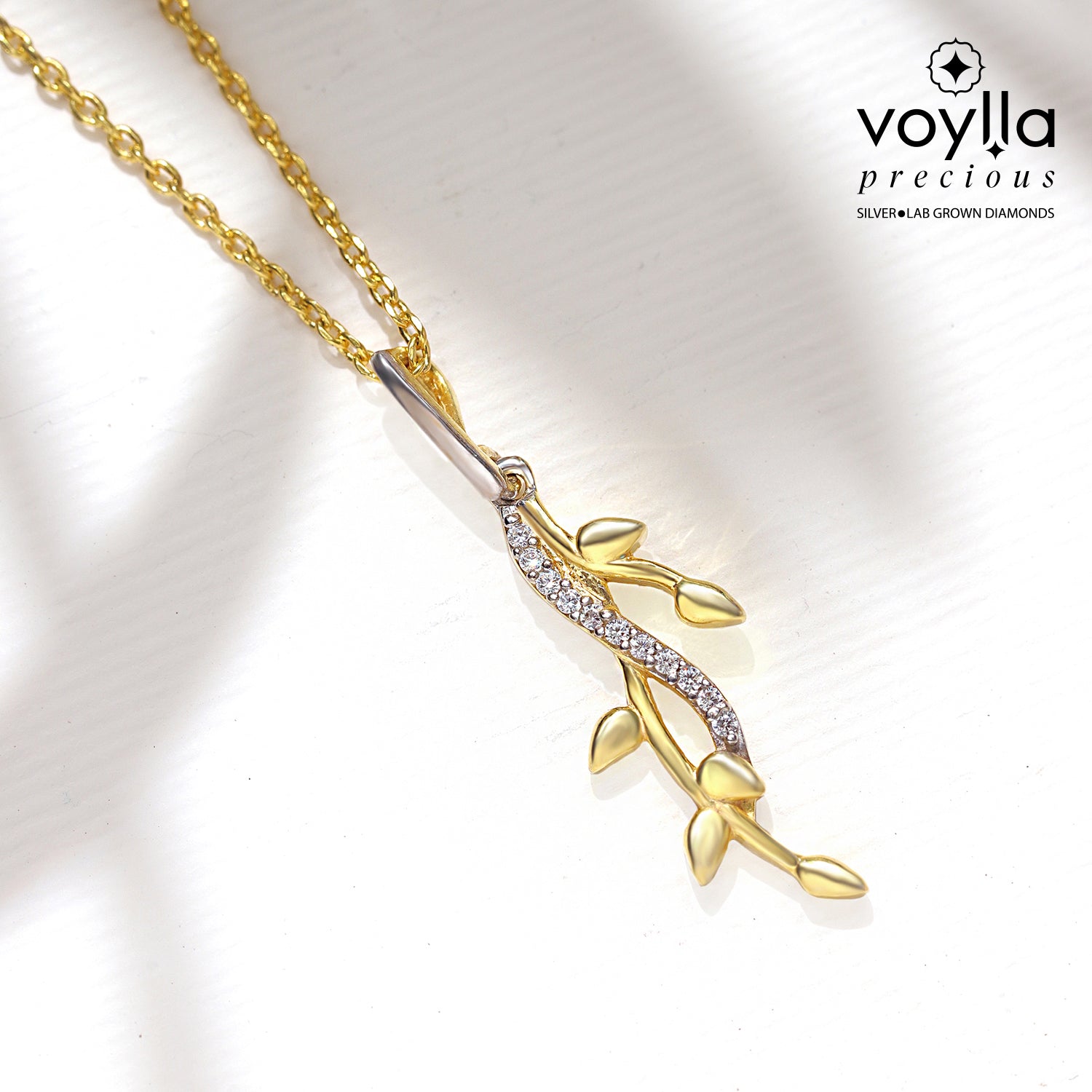 The Vines Twine Whisper Pendant is a graceful symbol of elegance, resilience, and contemporary charm. Part of Voylla’s Vines Collection, this design draws inspiration from the natural flow of vines and creepers representing adaptability, growth, and the inner strength to thrive in all conditions. Crafted in 925 sterling silver, this women’s pendant is finished with yellow gold plating and E-Cote coating, ensuring long-lasting brilliance, extra protection, and a rich luxurious shine. The design is further enhanced with sparkling CZ stones that add just the right amount of shimmer, making this pendant an elegant blend of simplicity and sophistication. Its lightweight structure makes it perfect as daily wear jewellery, while its refined finish makes it ideal for workwear or special occasions. Whether worn solo for a subtle minimalistic look or layered with other chains for a statement style, this sterling silver pendant transitions seamlessly from day to night. A perfect choice for thoughtful silver gifting, this pendant is a versatile and timeless gift for women, be it a gift for a lover, a cherished keepsake for birthdays, anniversaries, weddings, or festive occasions.