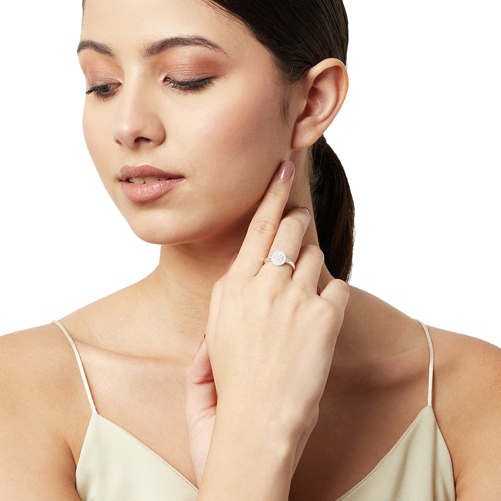 Ladies...wish no more, treat yourself to a ring that will make you smile every time you put it on as it is a perfect go-to accessory. The ring features brilliantly cut cubic zirconia that is surrounded by a circle of delicately sparkling smaller stones.