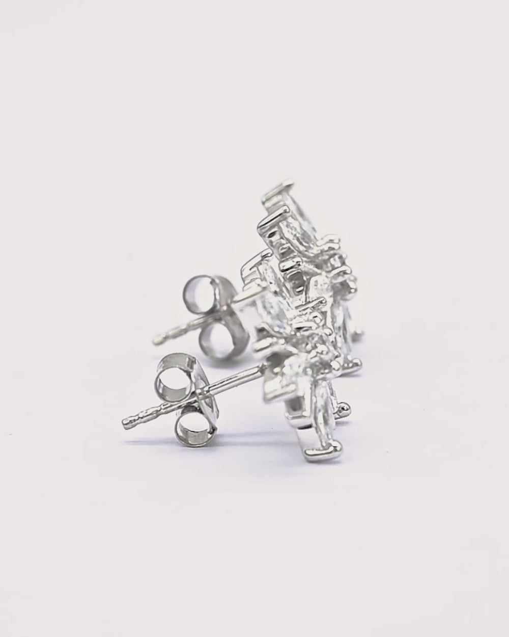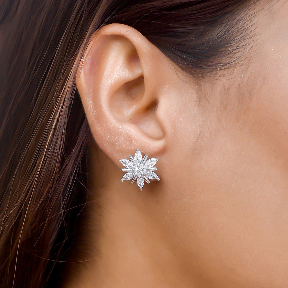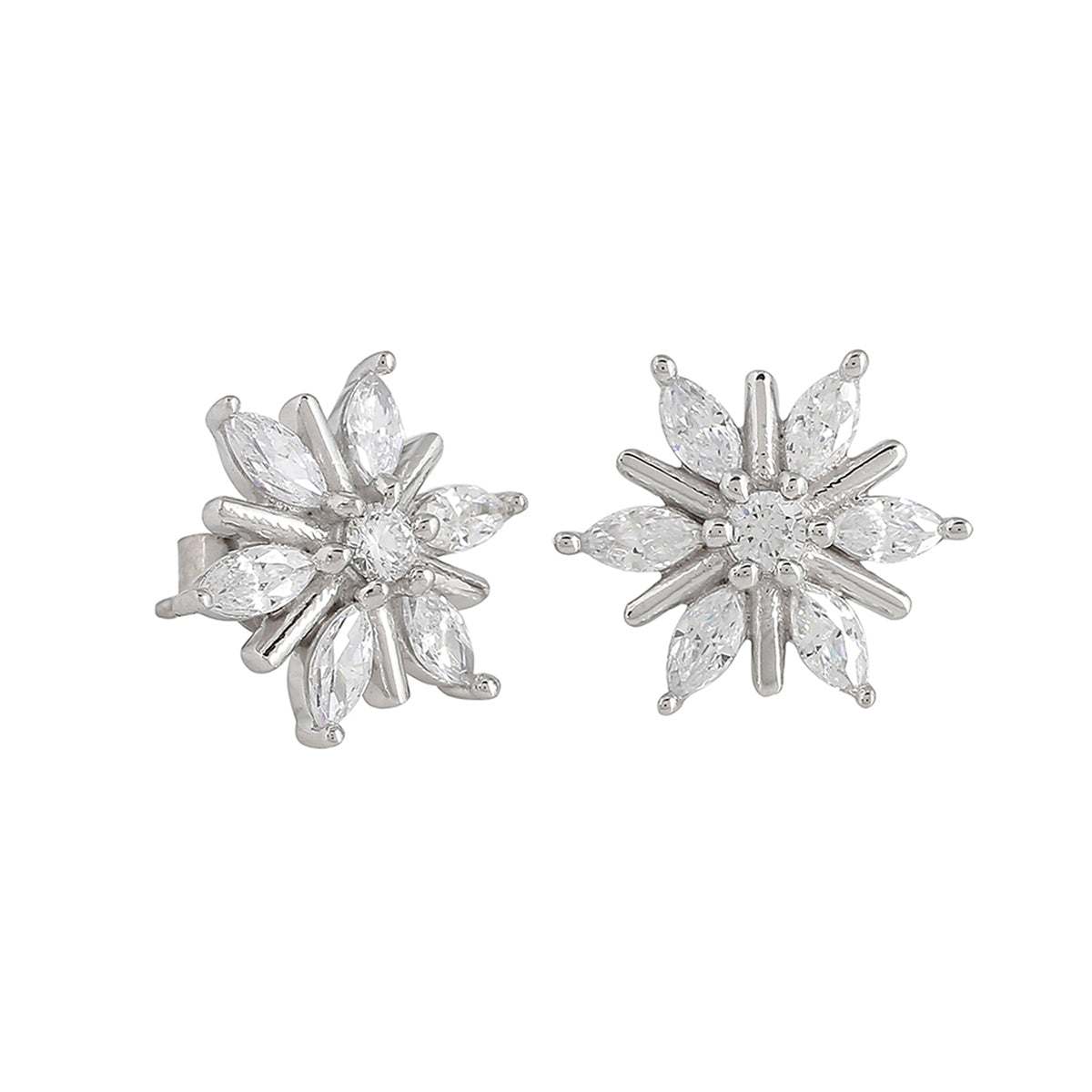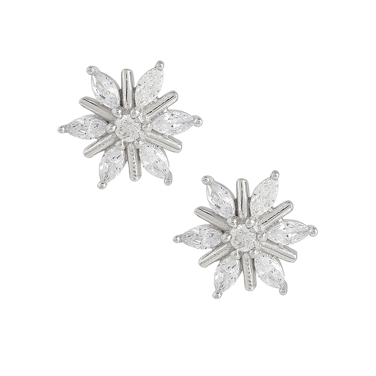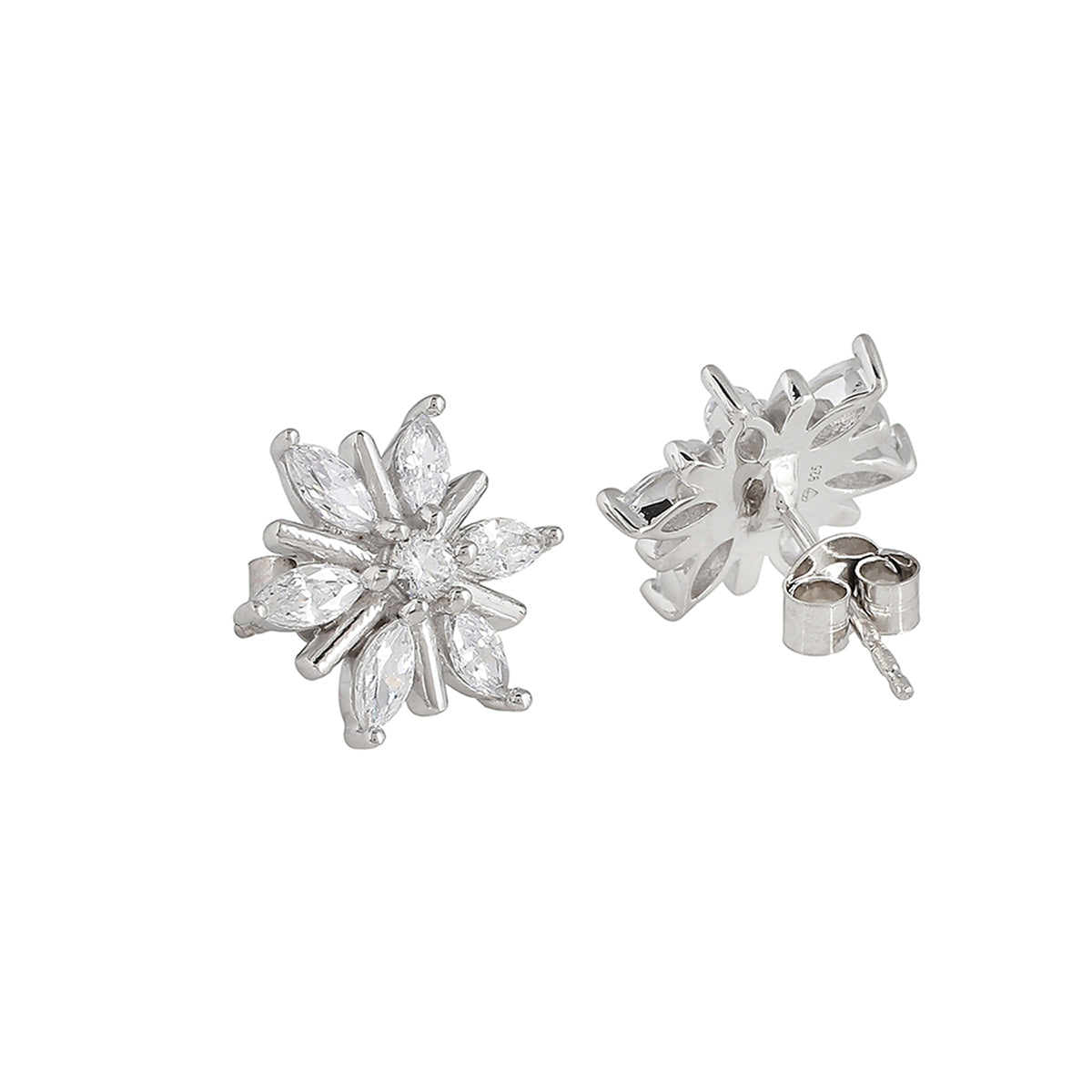 925 Sterling Silver Flower Shaped CZ Stud Earring