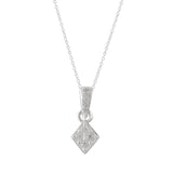 A white rhodium plated pendant set, fashioned out of pure 925 sterling silver. The pendant and stud earrings have been embellished with CZ gems in a classic cluster setting. Pair with everyday attire.