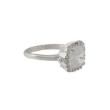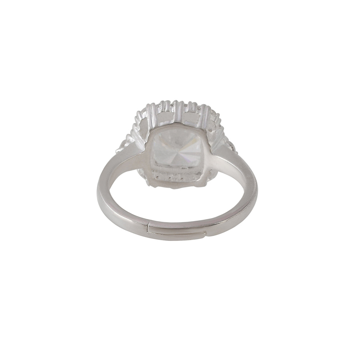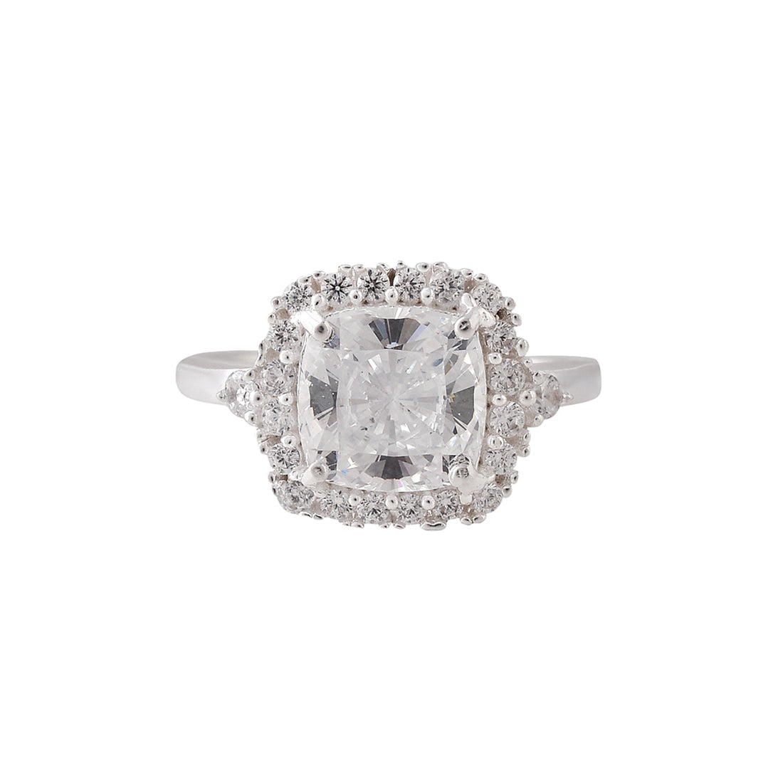 A beautiful 925 sterling silver ring with white rhodium plating, adorned with CZ gems in a classic cluster setting. Pair with formal outfits.