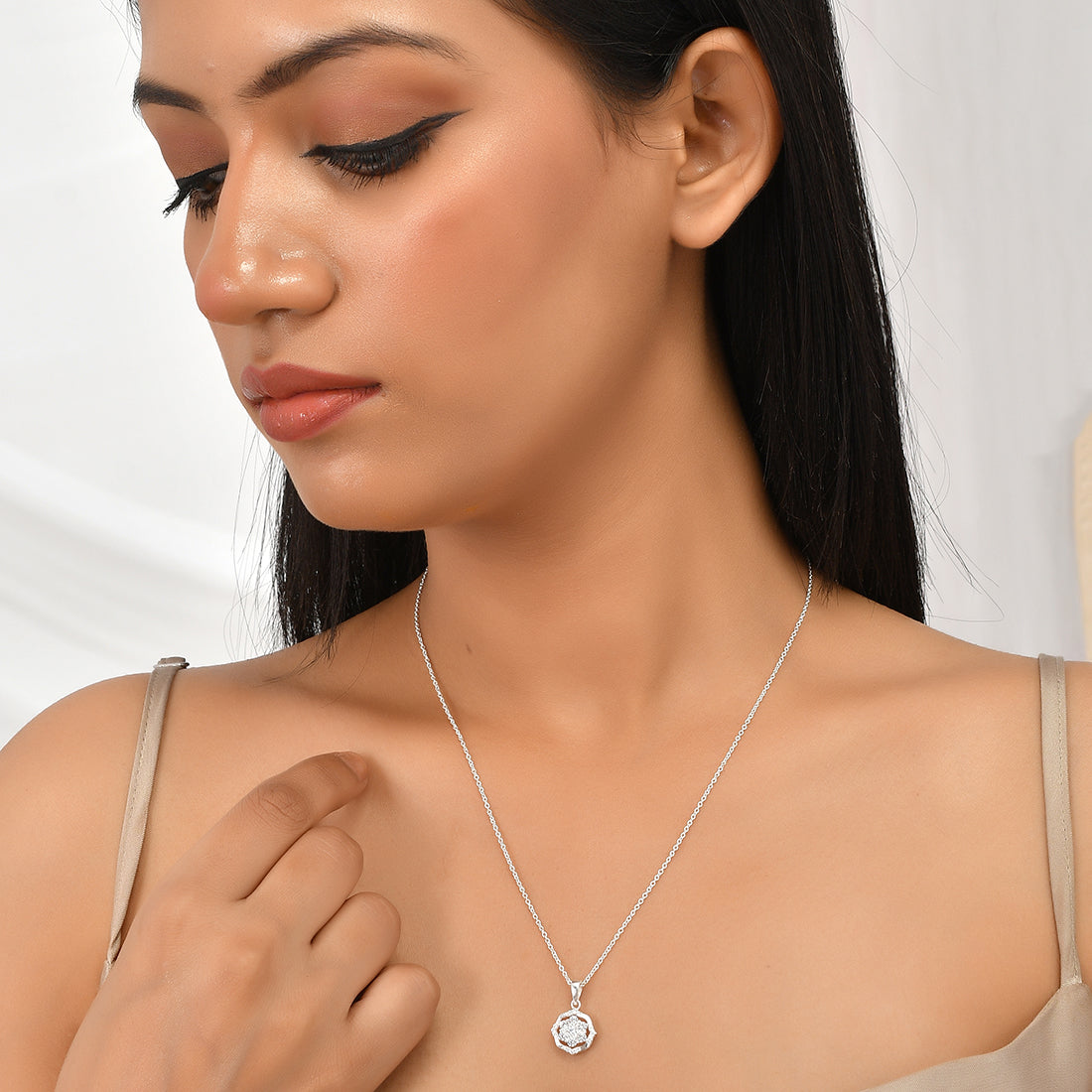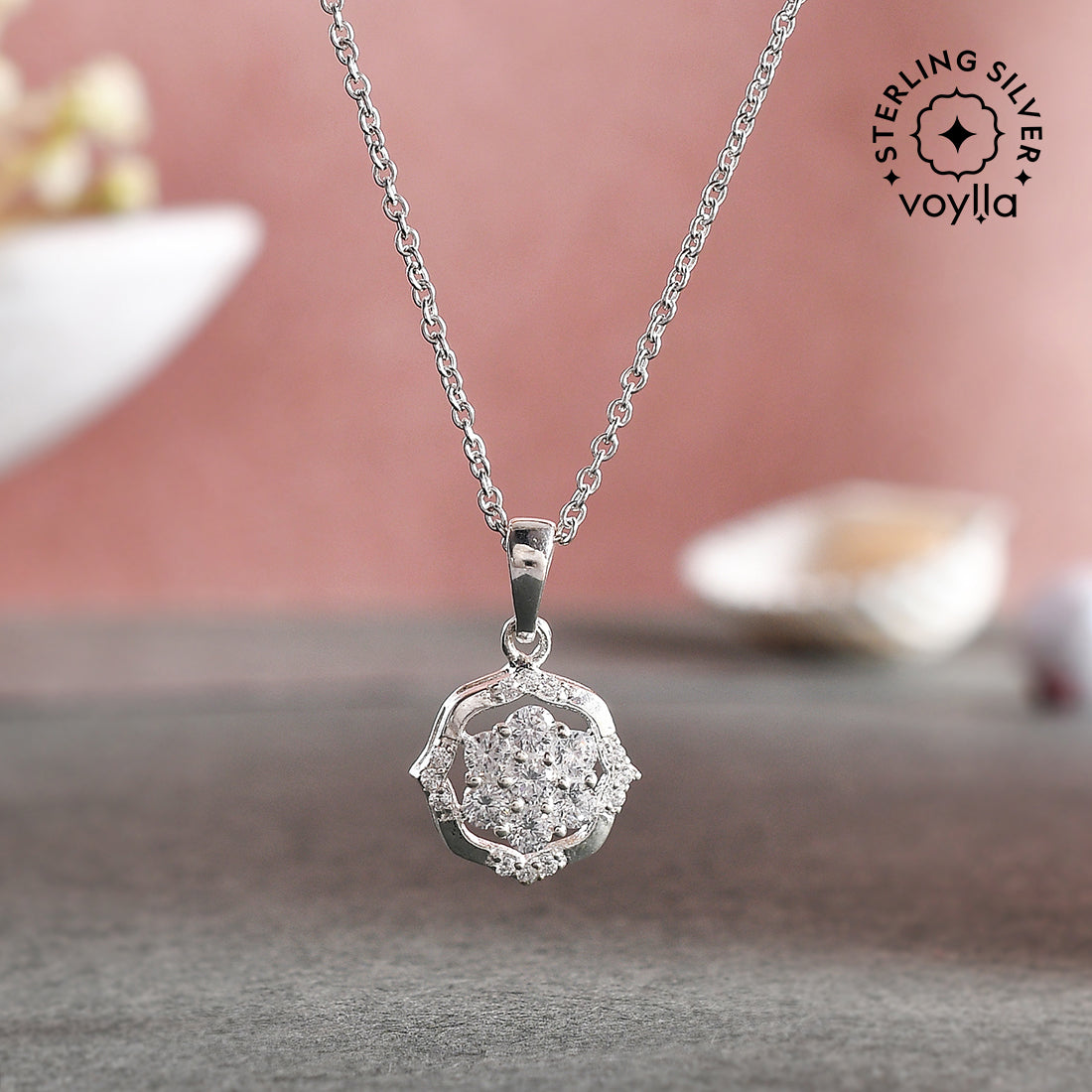 An elegant pendant for women. Silver plated 925 sterling sliver with Cz embellished . Look beautiful and graceful with this graceful pendant and match it with every dress wherever you go. Get it today!