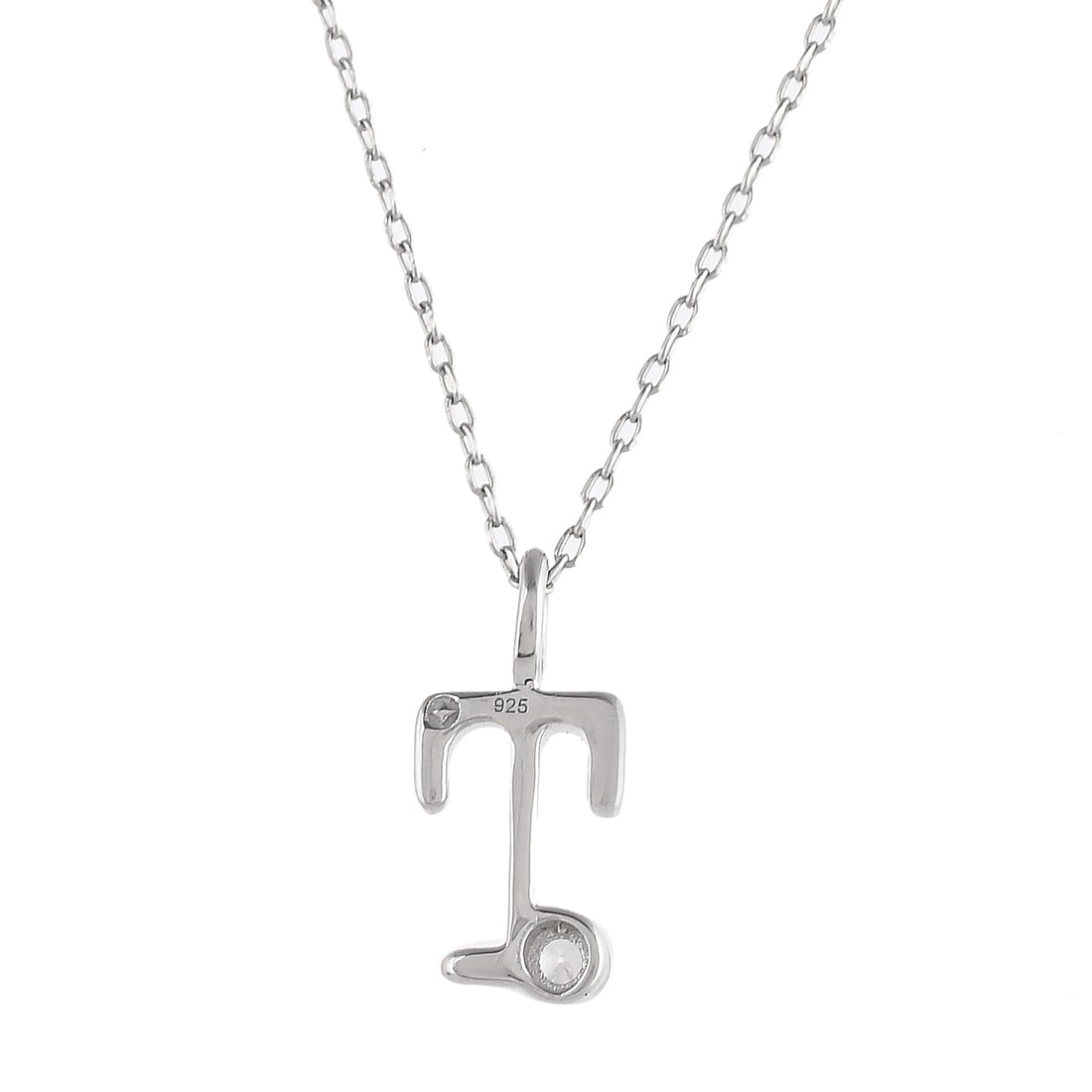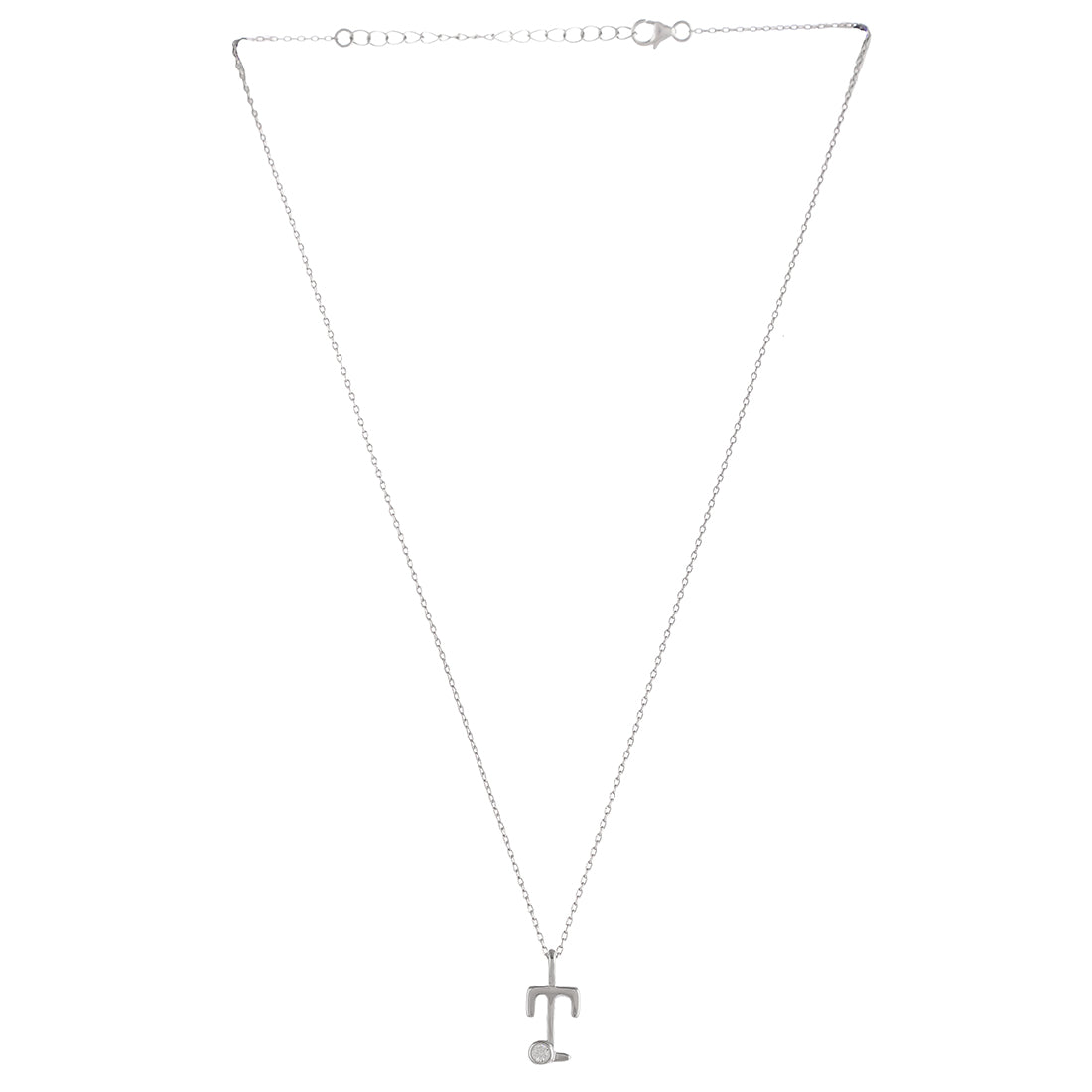 Minimalistic Alphabet T pendant with silver chains,studded with cubic zircons.Crafted in 925 Silver with a High Polish Finish .