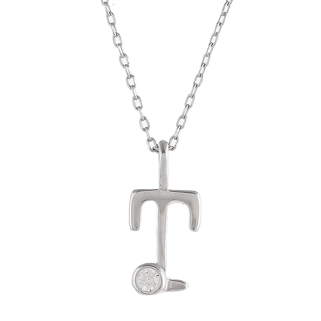 Sterling Silver Alphabet T Round Cut CZ Pendant