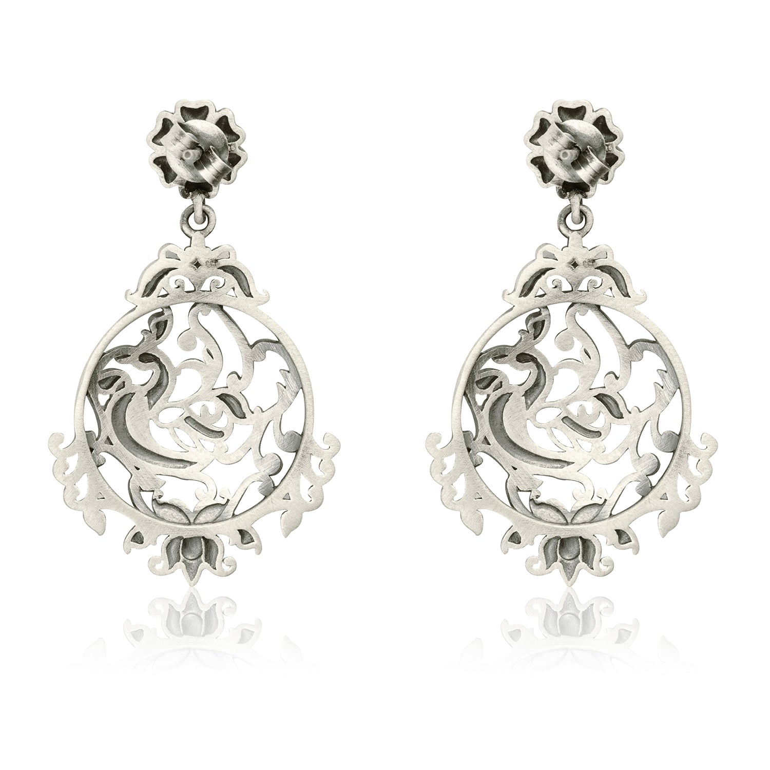 Cave Chronicles 925 Sterling Silver Peacock Reverie Dangle Earrings