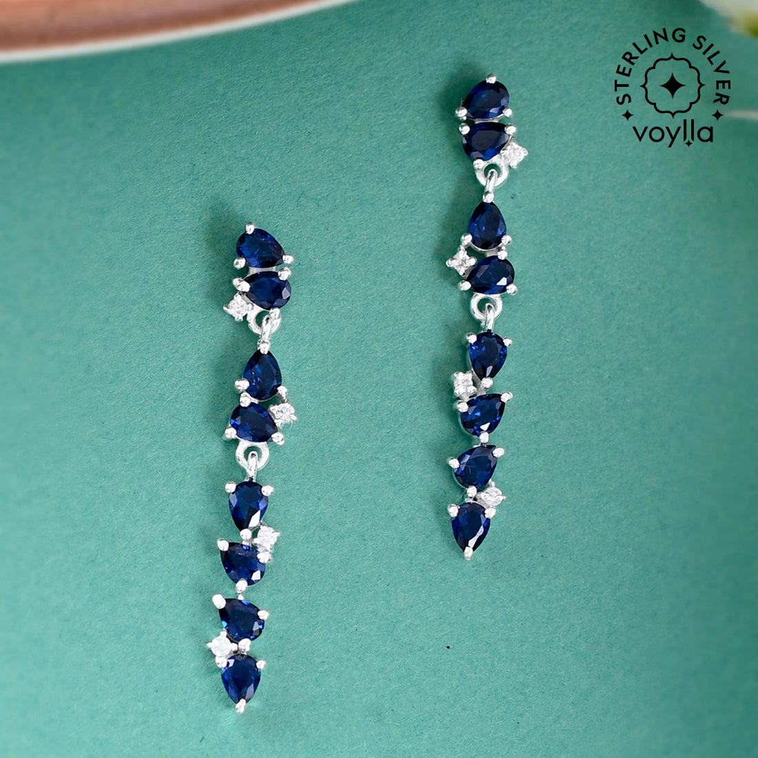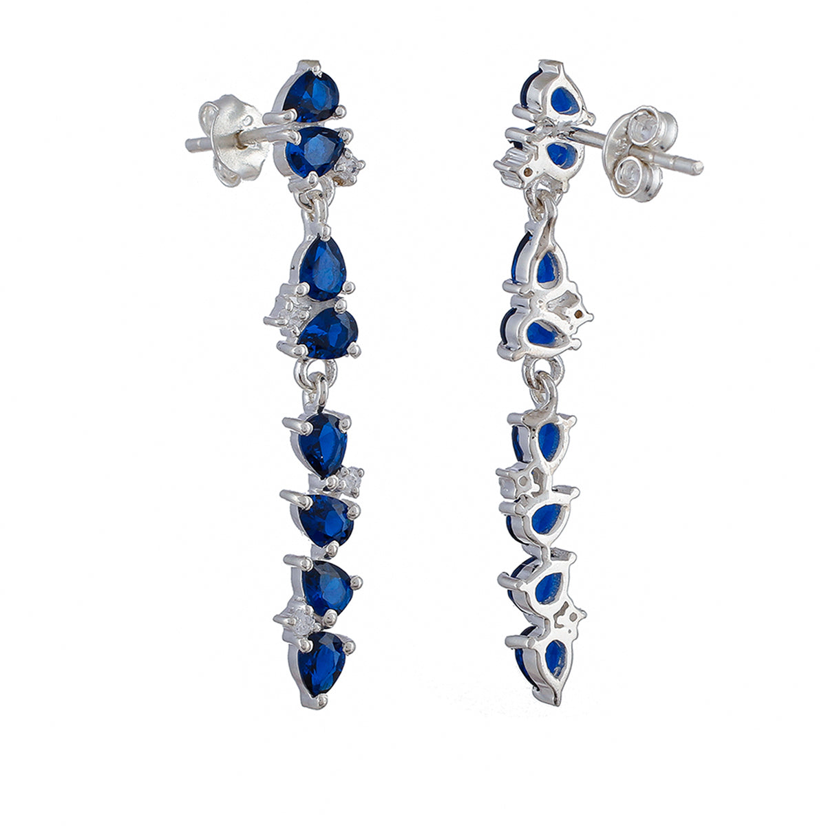 Accentuate your feminine charm and enhance your personality by adorning this pair of earrings crafted from 925 sterling silver with blue stones. Suitable for all occasions and regular wear.