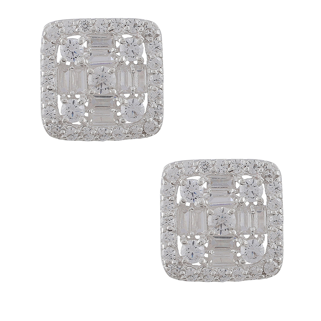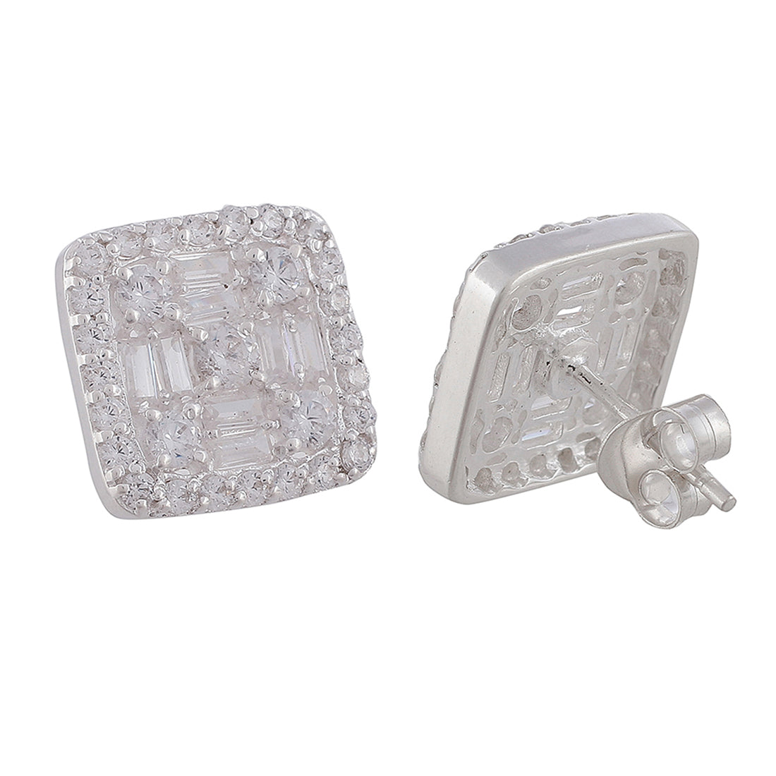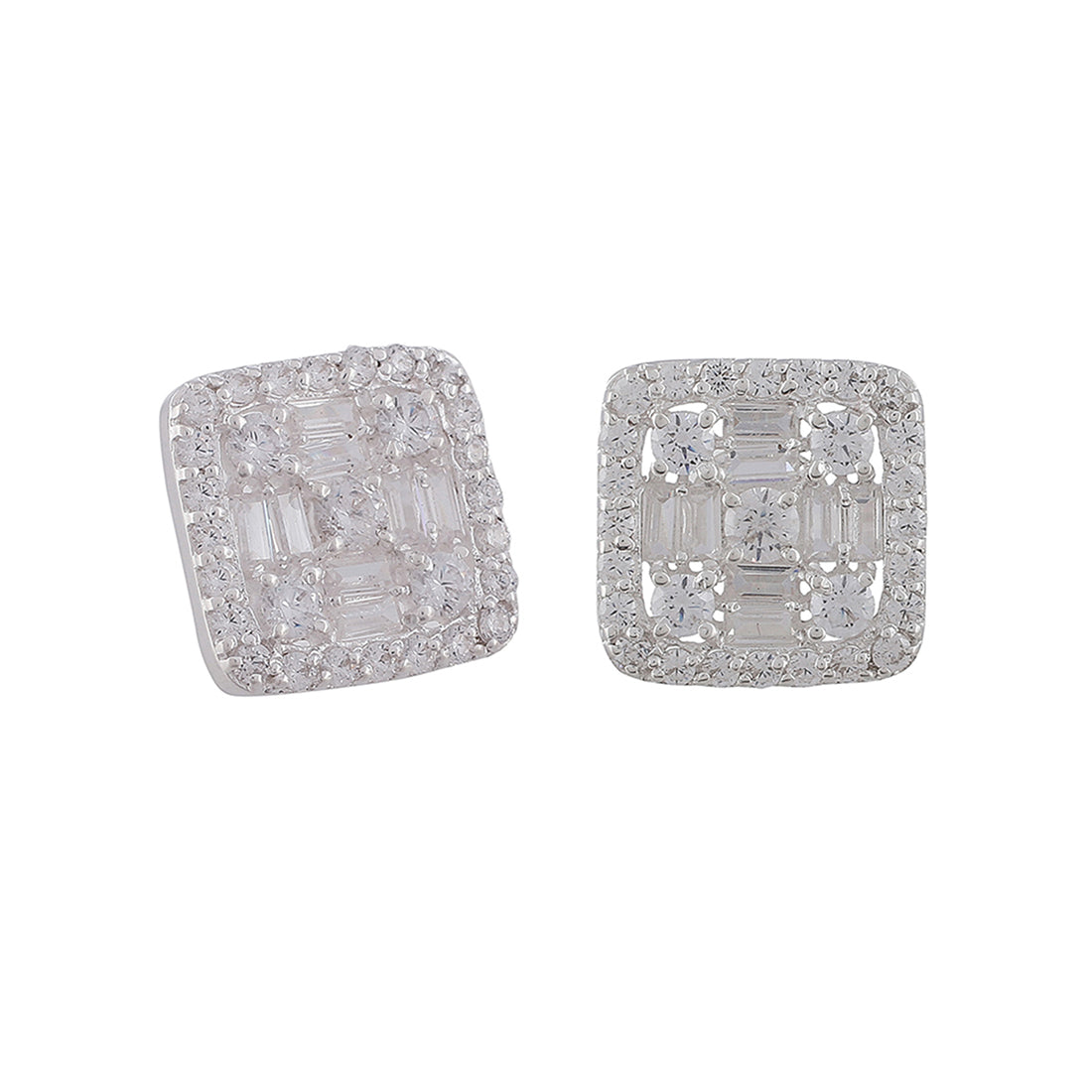 A stunning sterling silver ear studs beautifully embellished sparkling CZ make an irresistible pick. Team these with your ethnic attire or match with your formal attire to look your best!