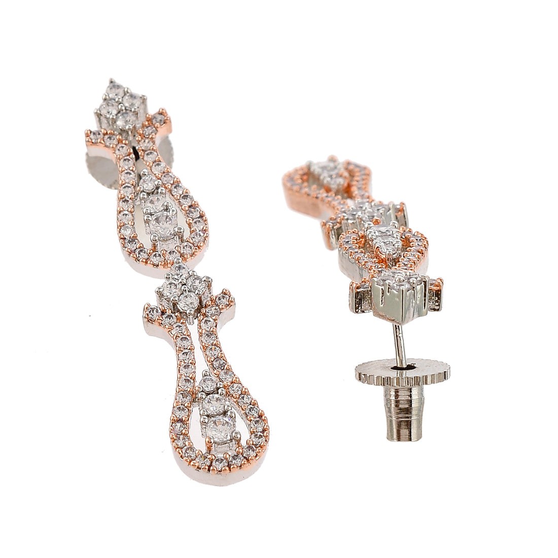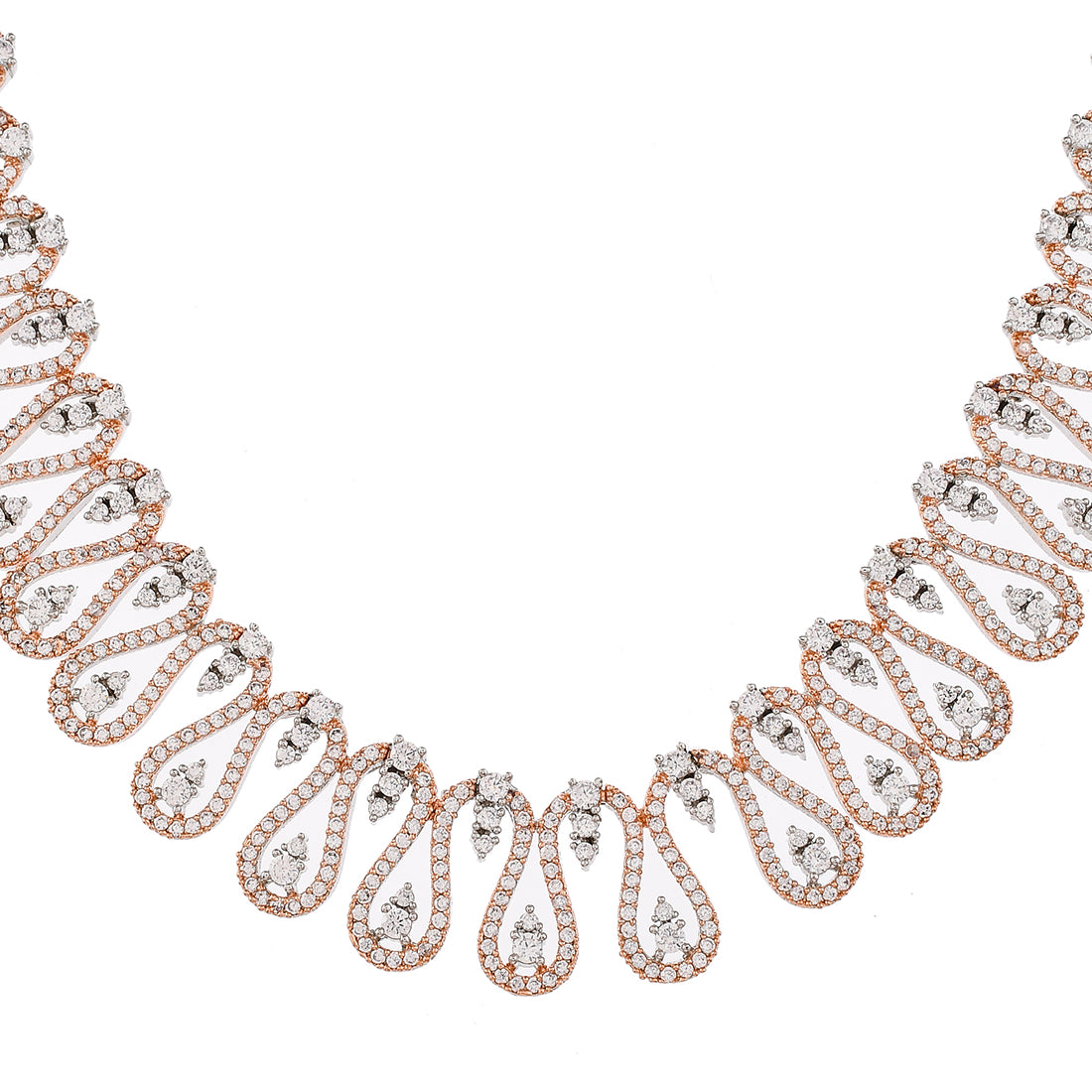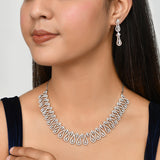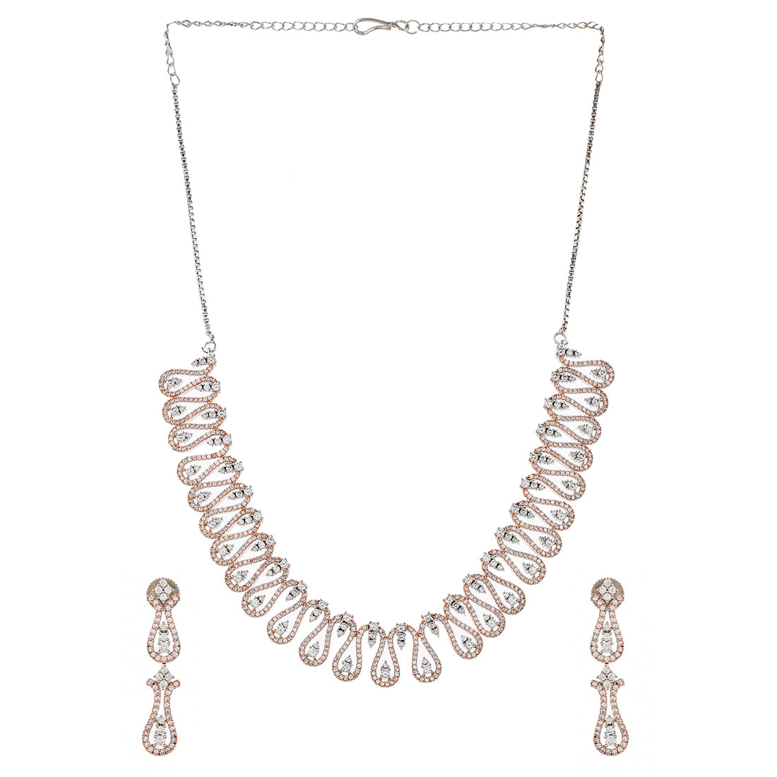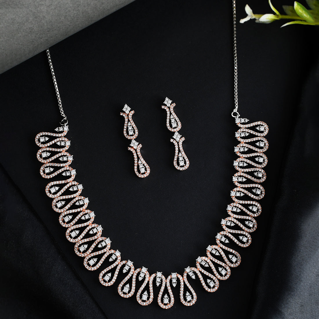 Cz Elegance Dual Tone Curvy Wave Brass Made Necklace Set