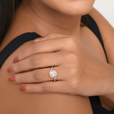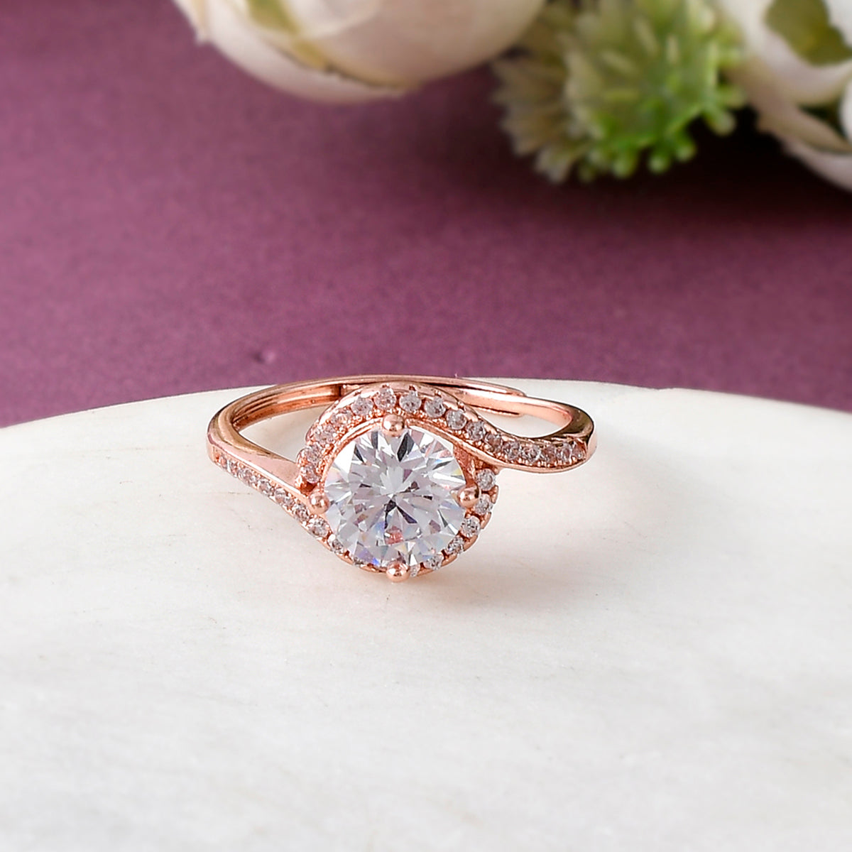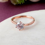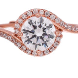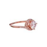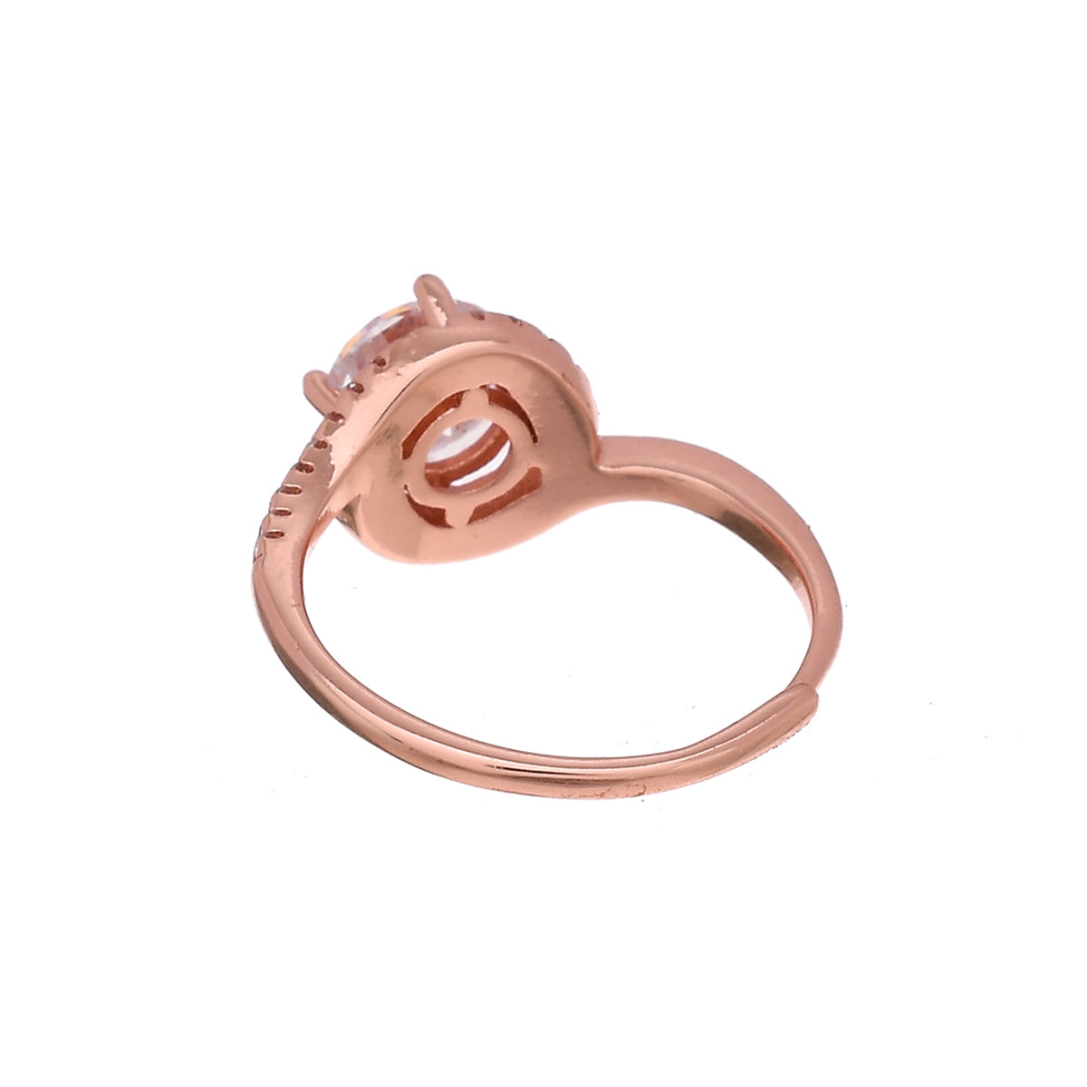 Overlap Pattern Round Cut Zircon Embellished Rose Gold Plated Brass Ring