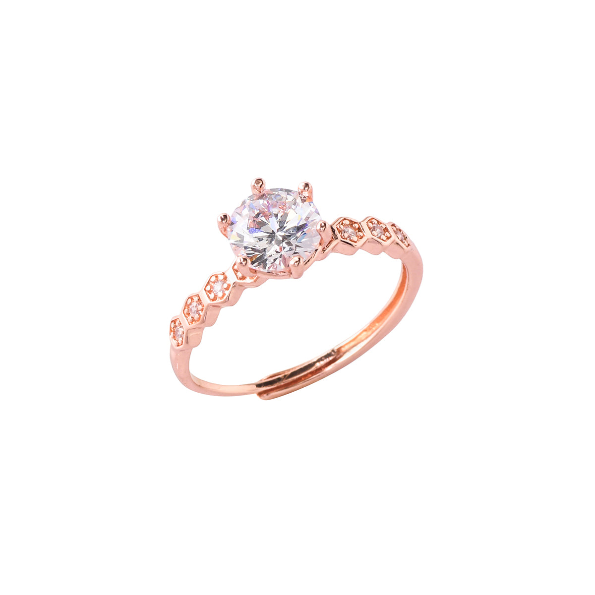 Add a touch of ethereal beauty to your jewelry collection with the Eternal Grace Solitaire Ring from the Sparkling Elegance Elysian Collection, now crafted with an exquisite rose gold finish. This stunning ring showcases a dazzling American diamond solitaire set...