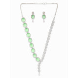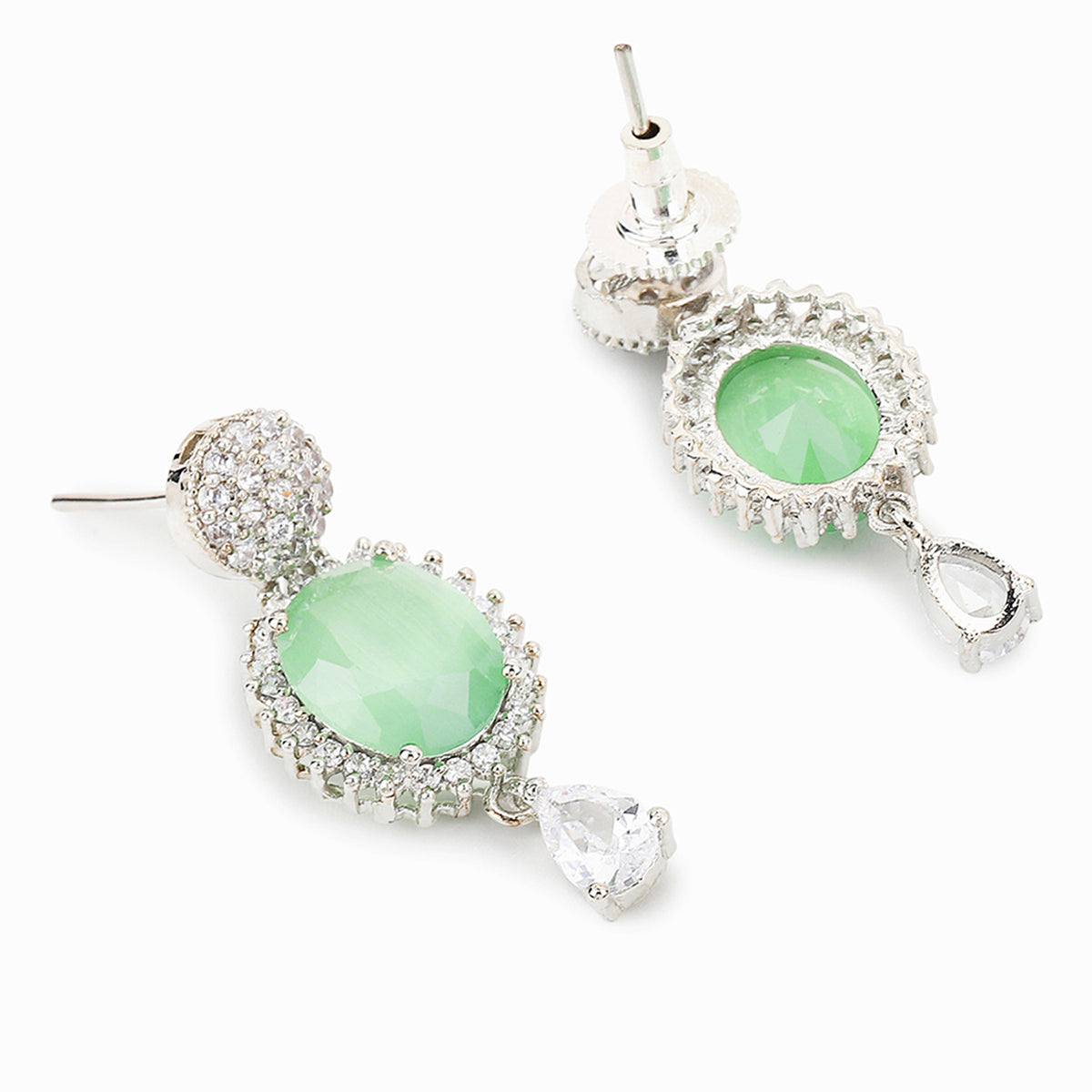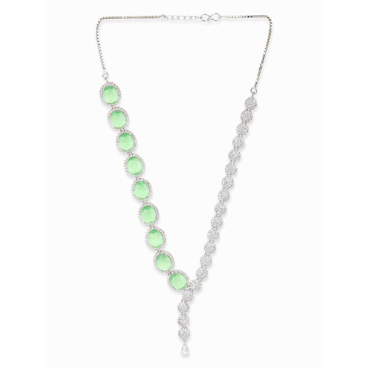 Sparkling Elegance Green and White CZ Brass Silver Plated Jewellery Set