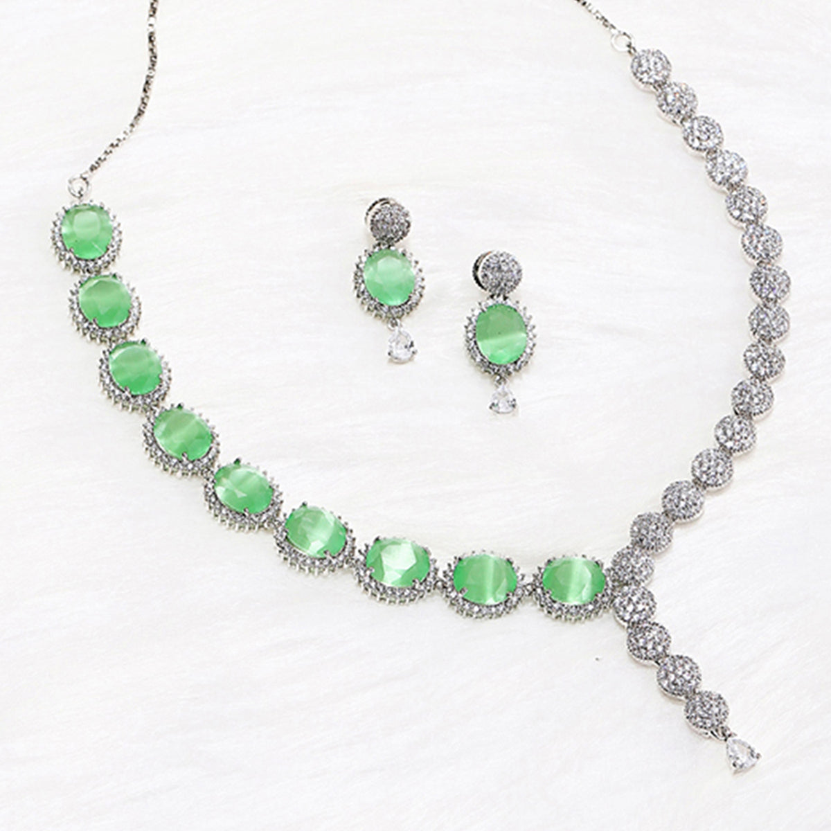 Sparkling Elegance Celestial Charm Emerald American Diamond Necklace Set